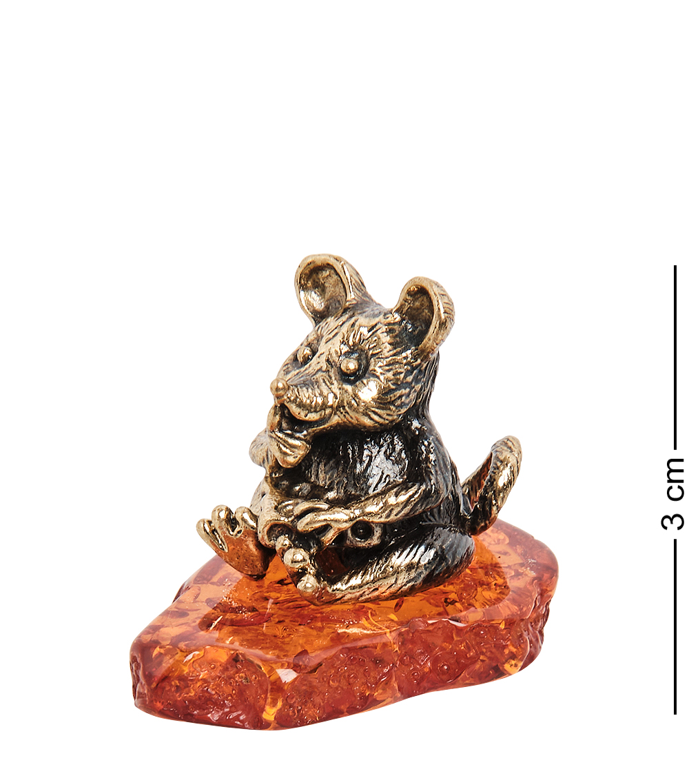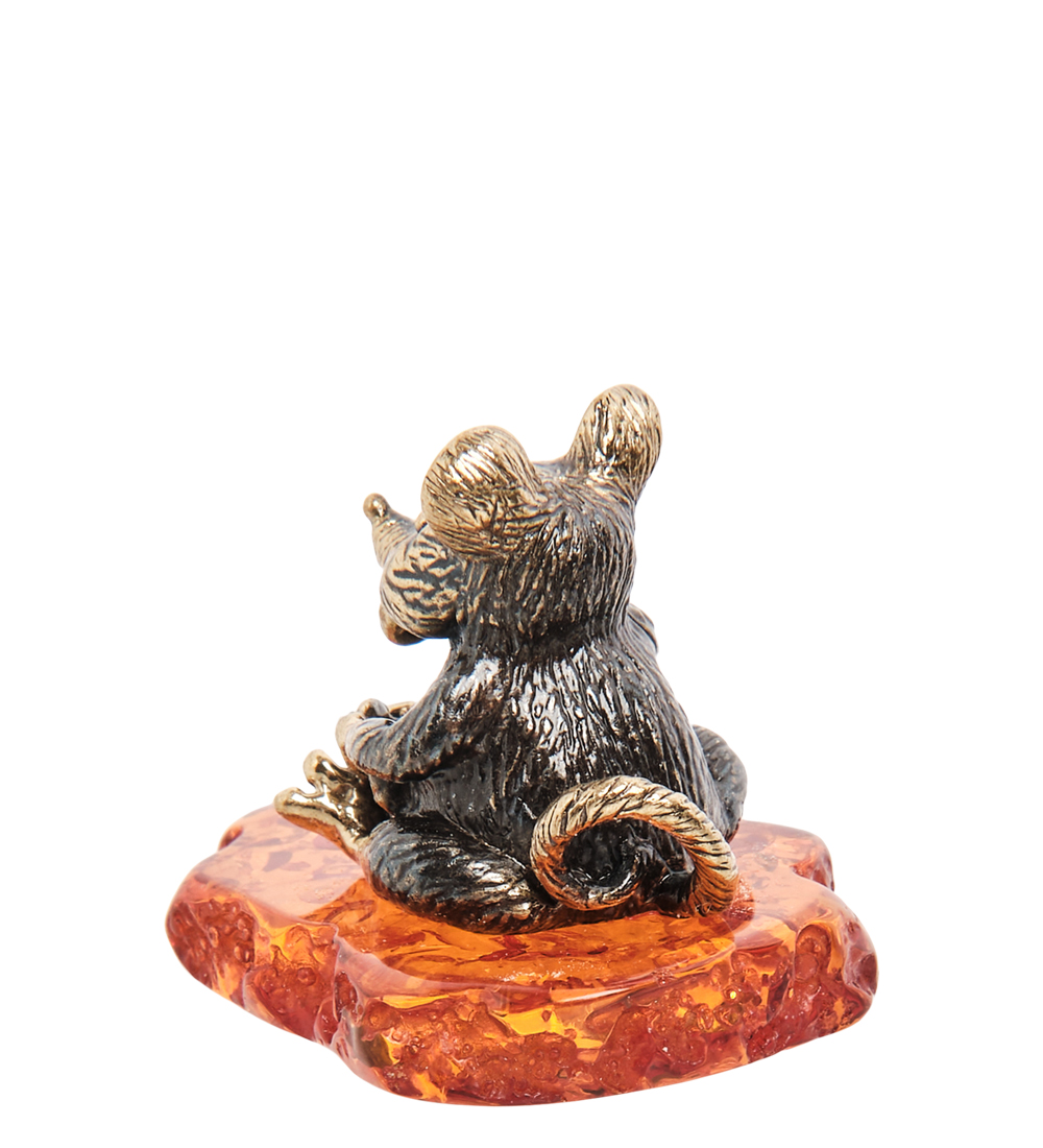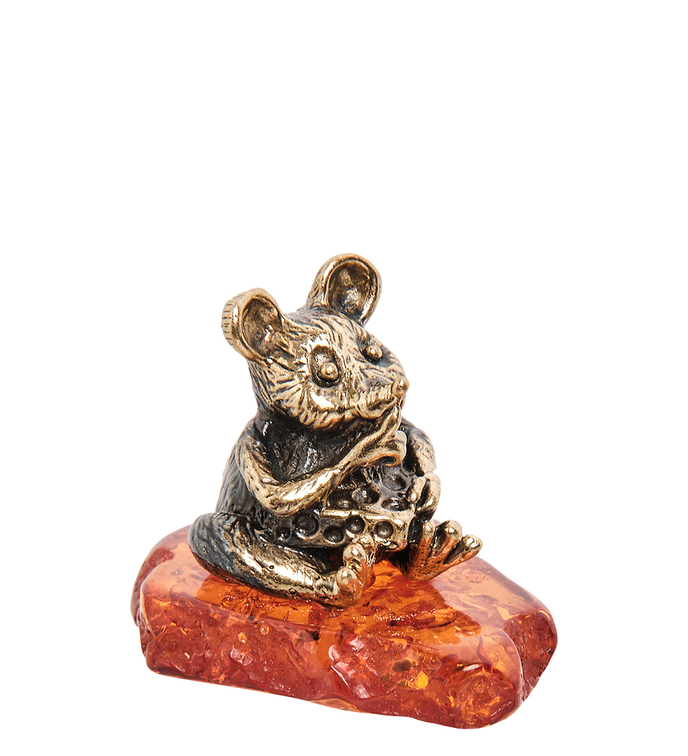 Am-1605 фигурка мышонок луи с сыром (латунь, янтарь)
