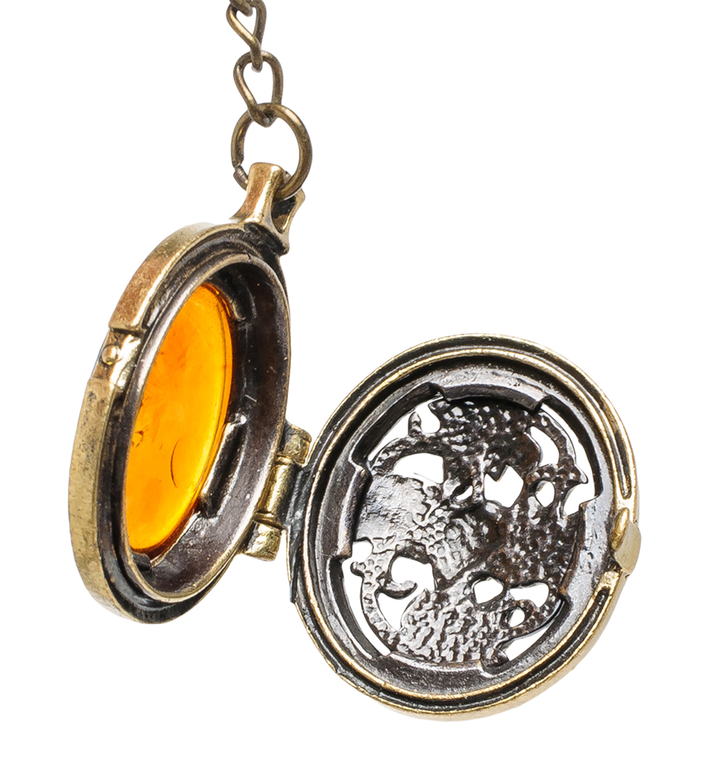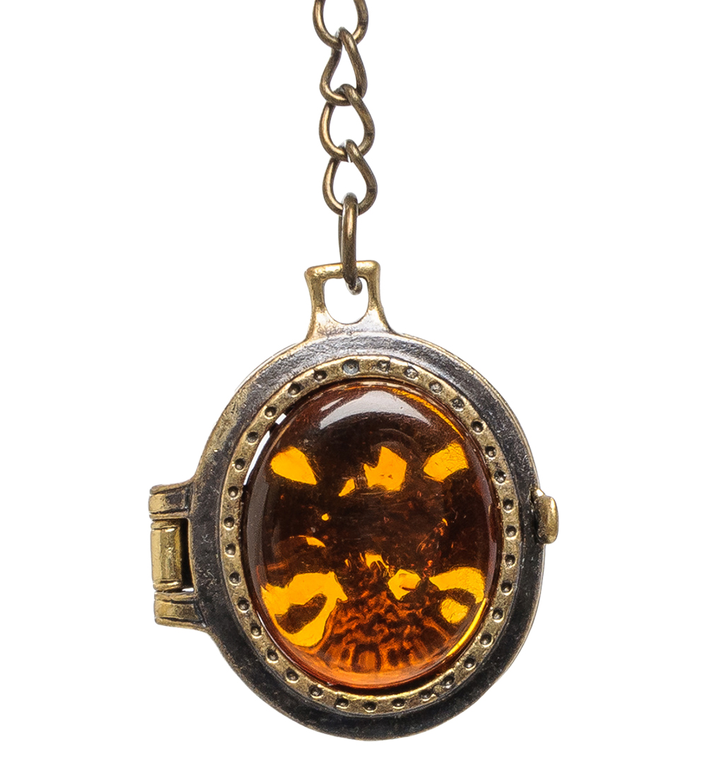 Am-1611 брелок медальон лоза (латунь, янтарь)