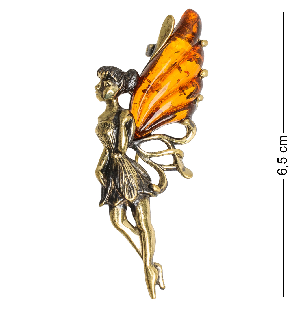 Am-1632 брошь фея динь-динь (латунь, янтарь). Параметры товара Материал: латунь, янтарь Страна производства: Россия