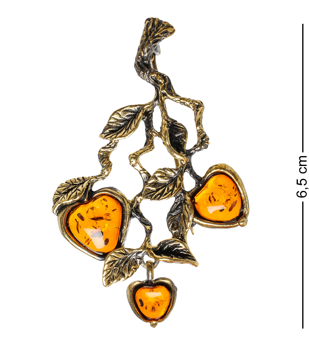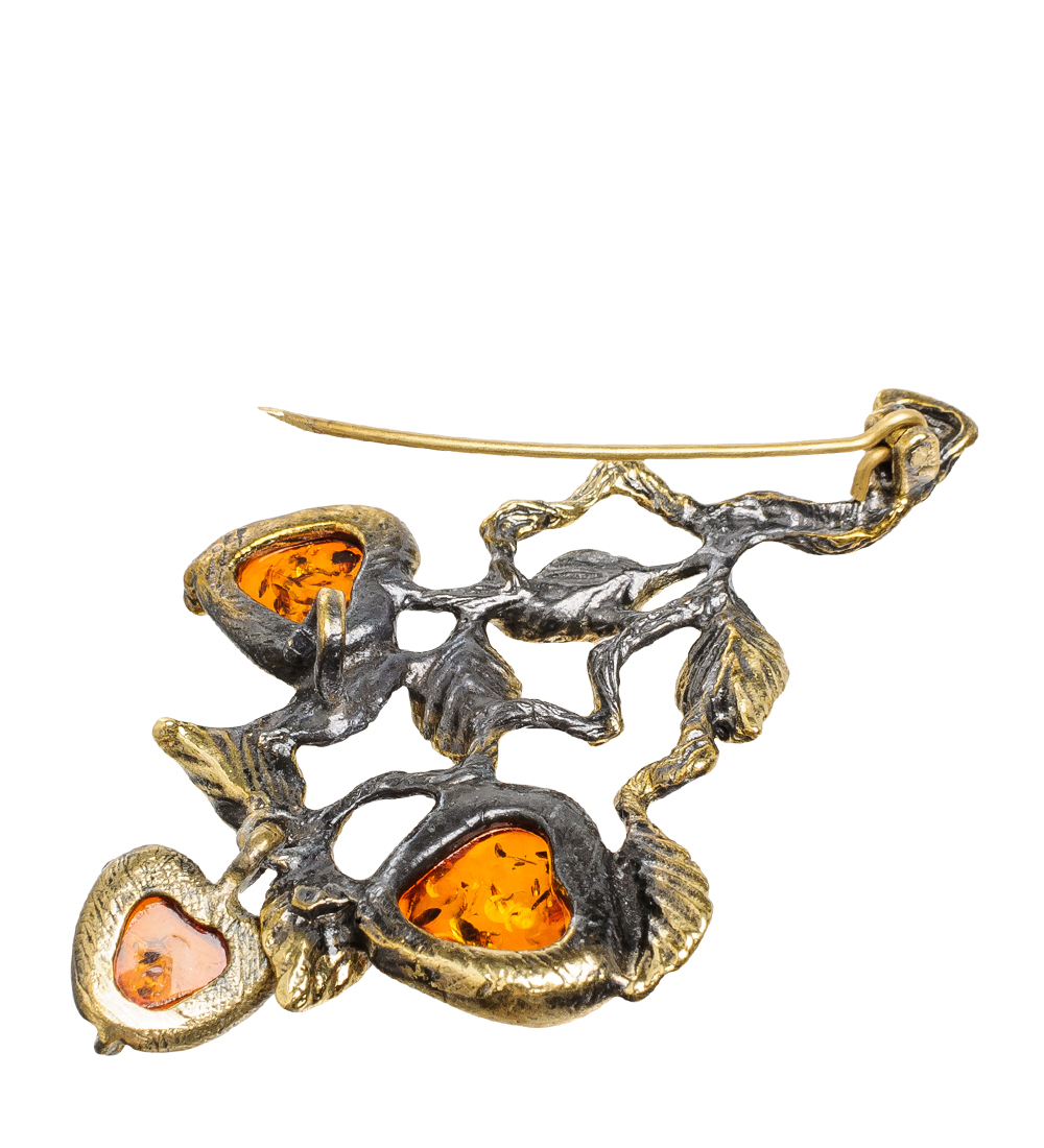Am-1647 брошь яблочки на ветке (латунь, янтарь)
