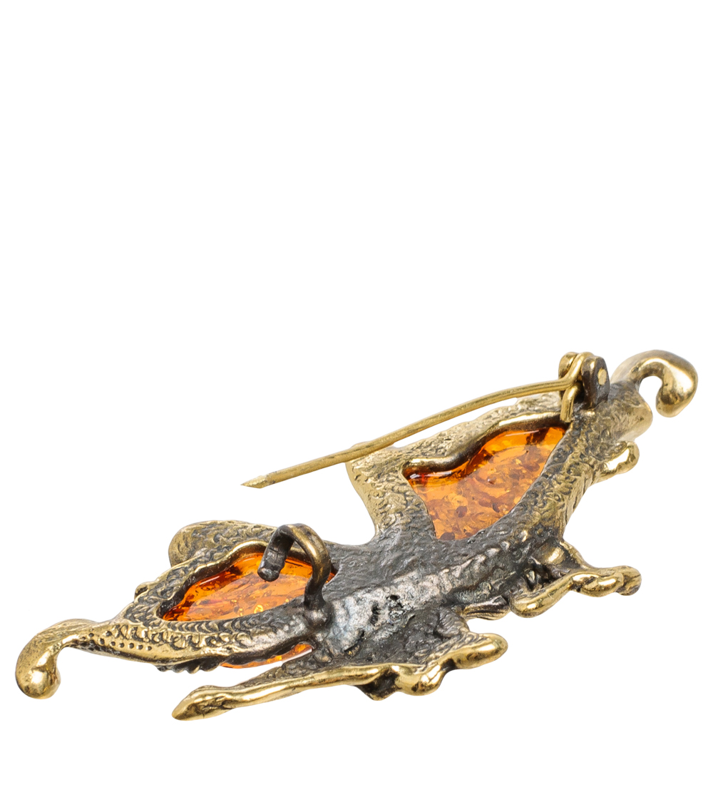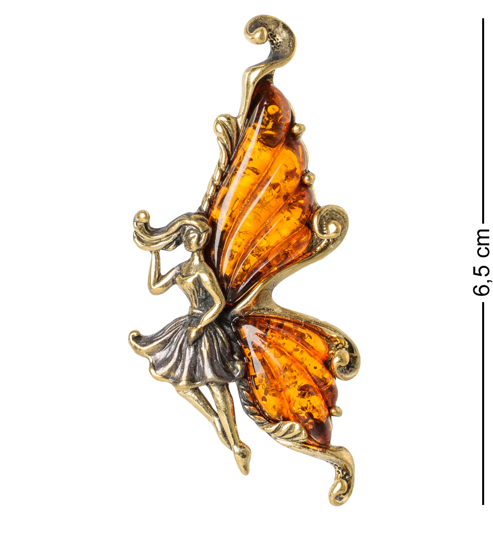 Am-1653 брошь бабочка фея ажурная (латунь, янтарь)