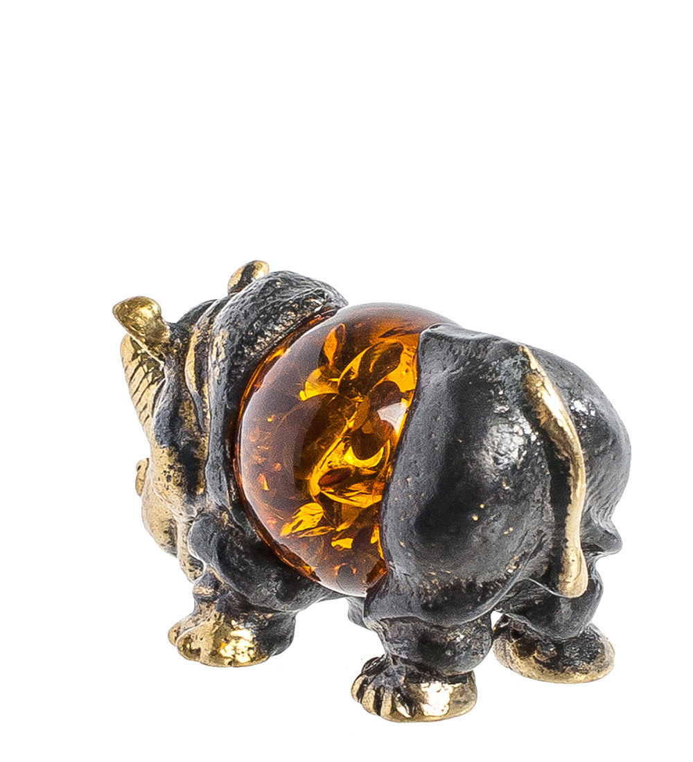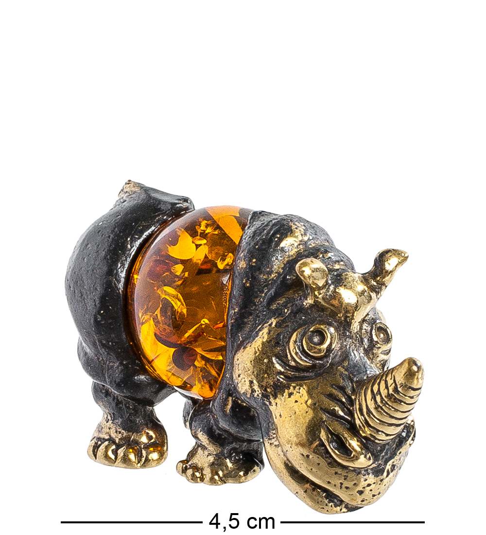 Am-477 фигурка носорог (латунь, янтарь)