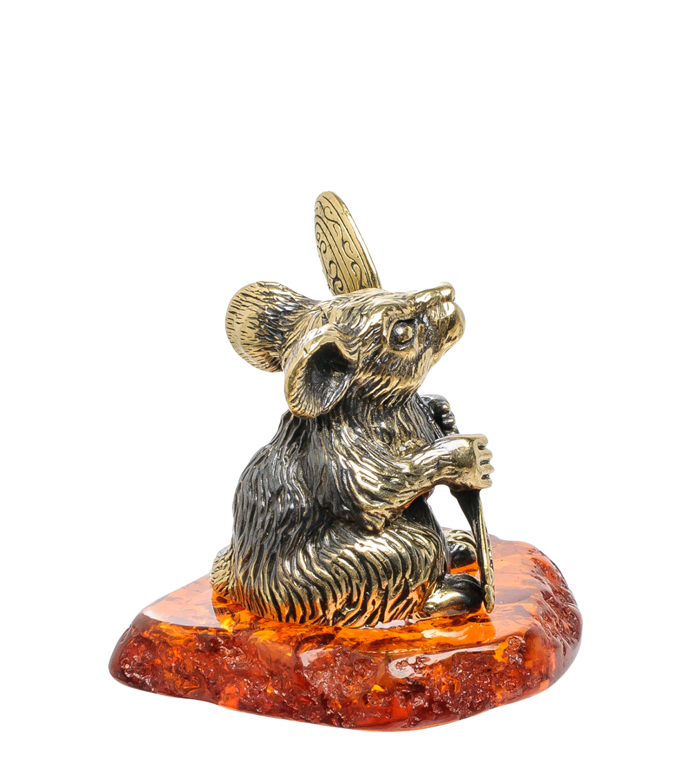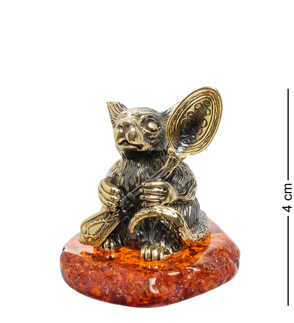 Am-1674 фигурка мышь герман с ложкой (латунь, янтарь)