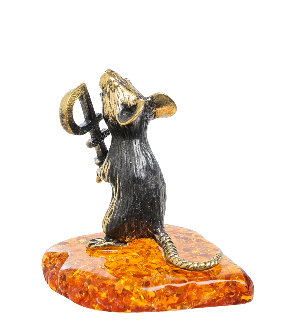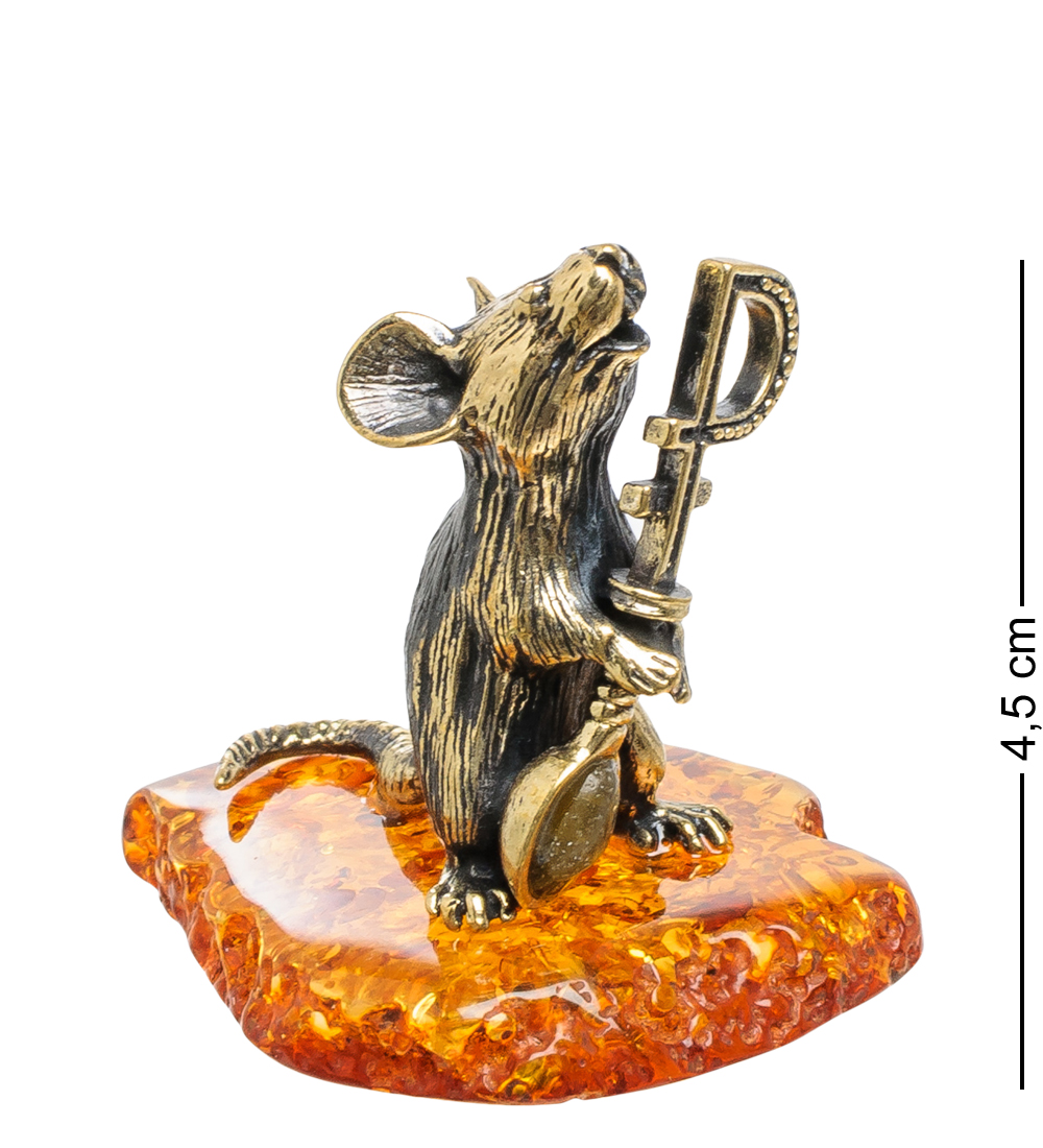 Am-1677 фигурка мышь с ложкой рубль (латунь, янтарь)