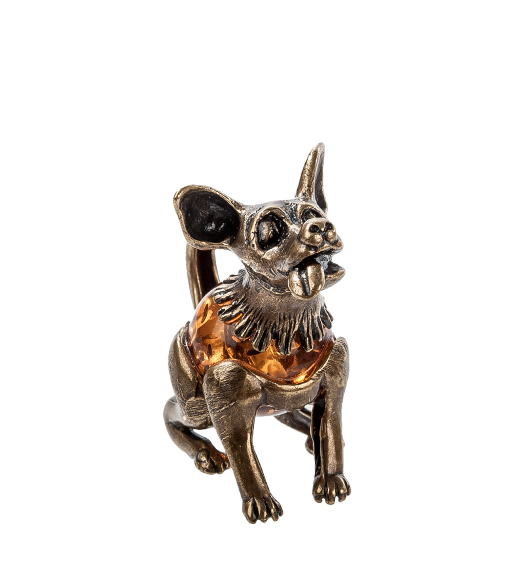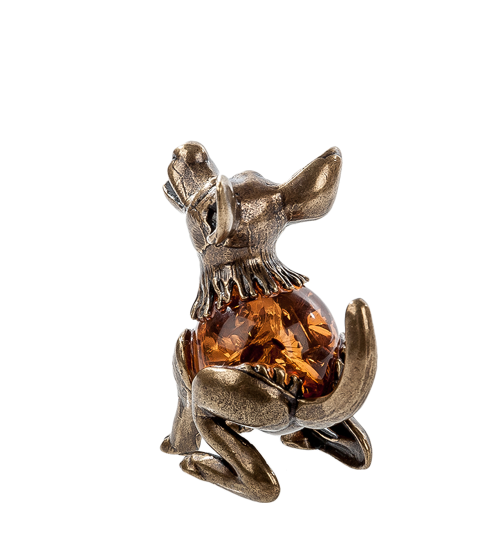 Am-506 фигурка пес-барбос (латунь, янтарь)