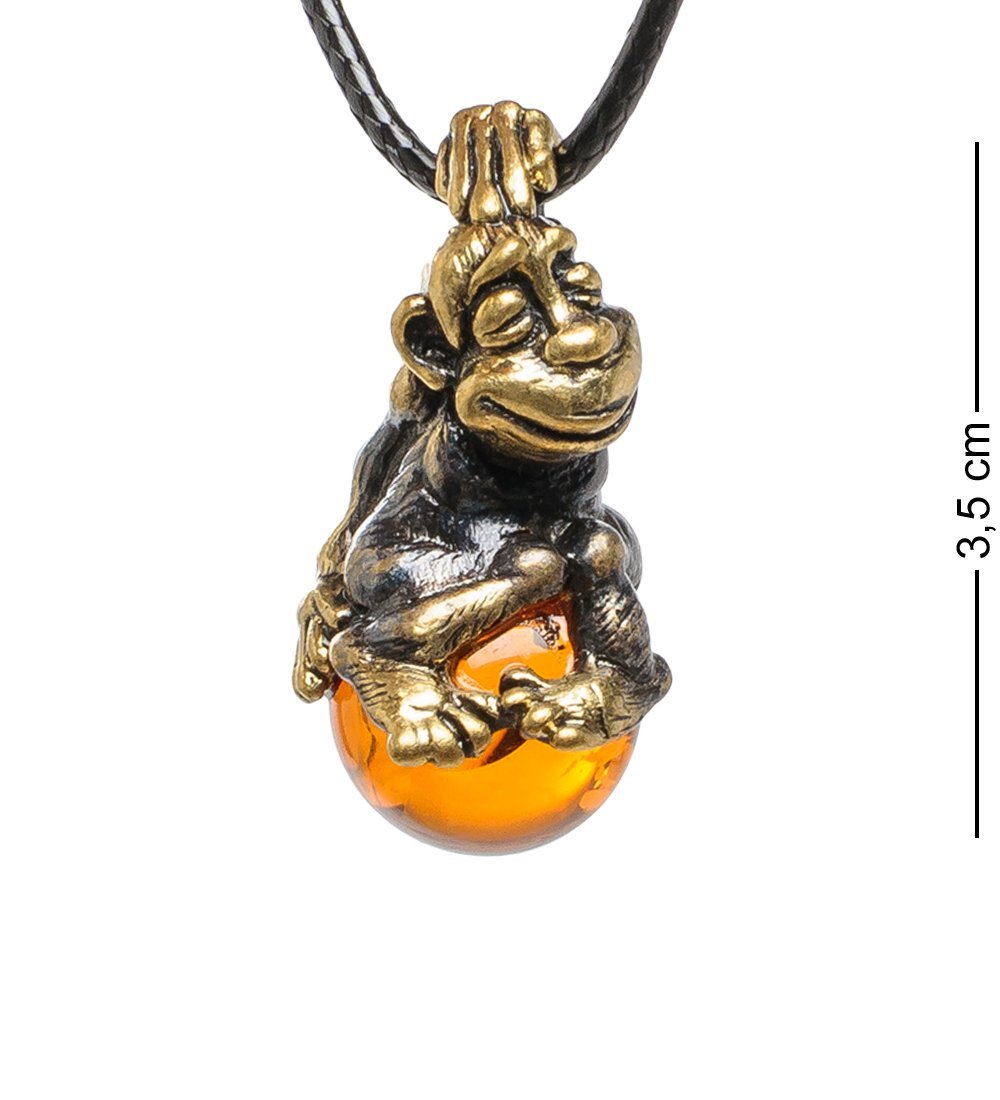Am-1686 подвеска счастливая макака (латунь, янтарь)