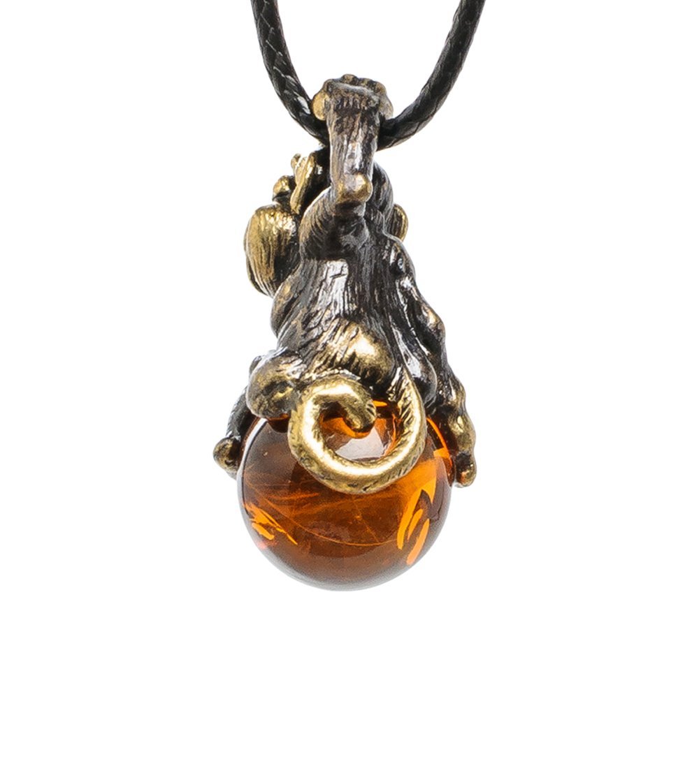 Am-1686 подвеска счастливая макака (латунь, янтарь).