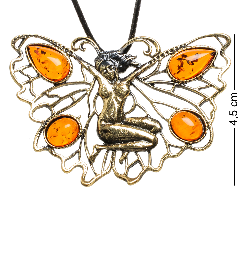 Am-1716 подвеска бабочка спящая фея (латунь, янтарь)