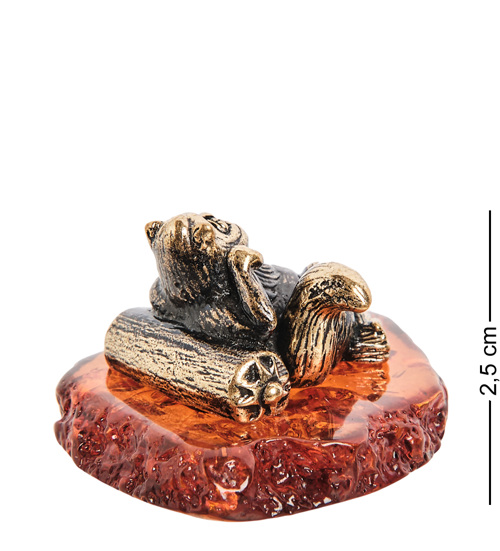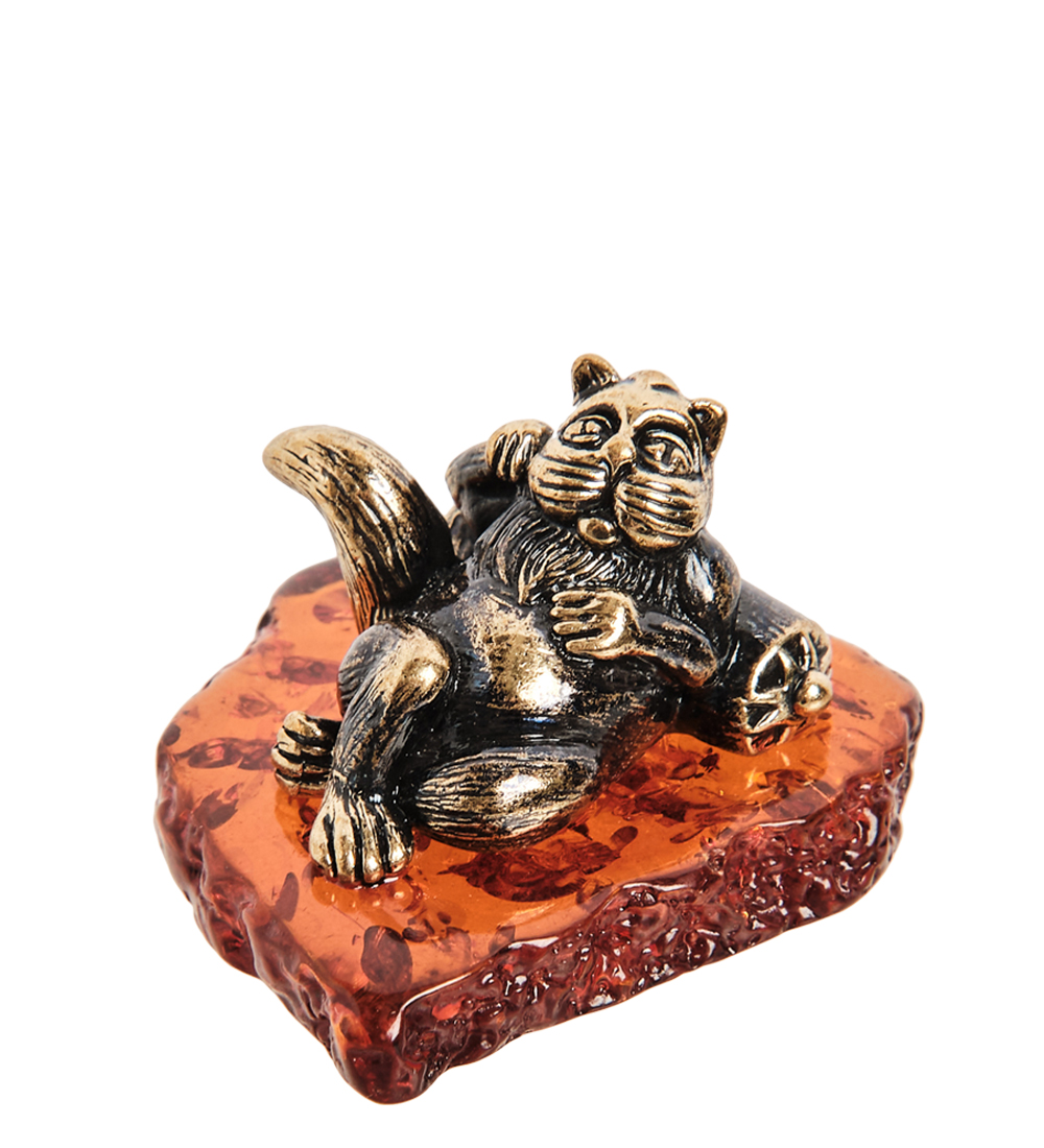 Am-1754 фигурка кот барин (латунь, янтарь)