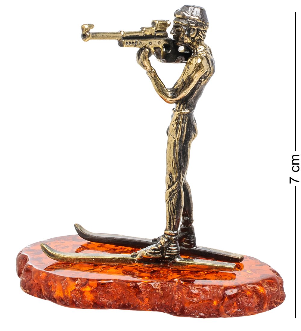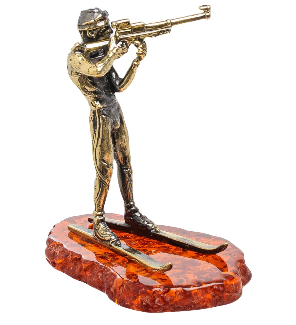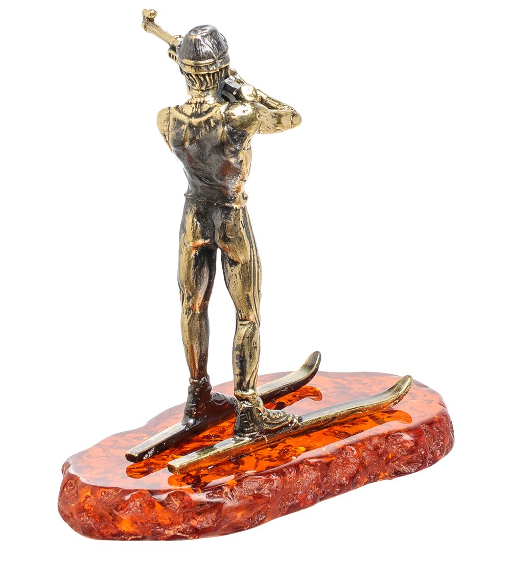 Am-1758 фигурка биатлонист (латунь, янтарь)
