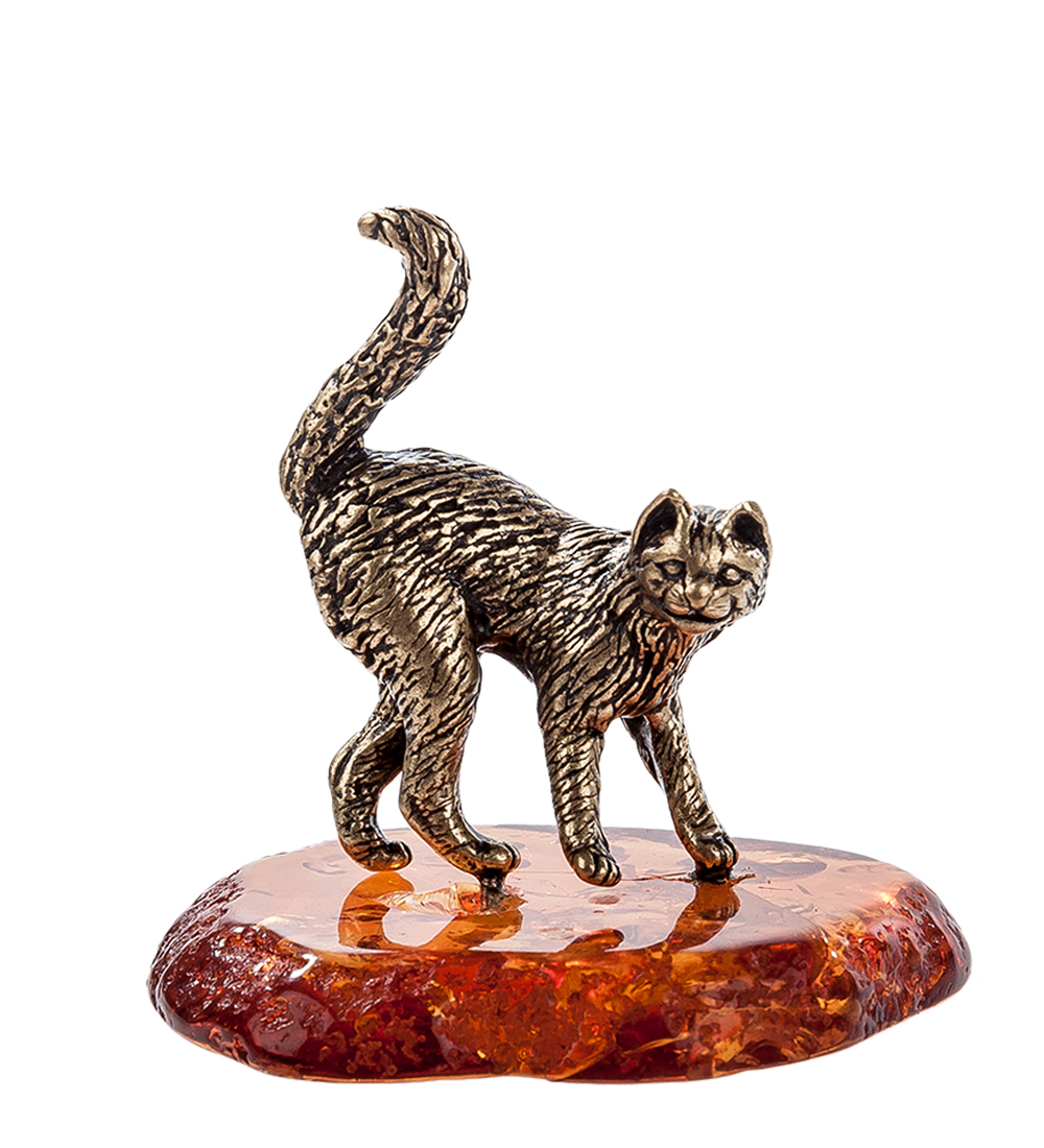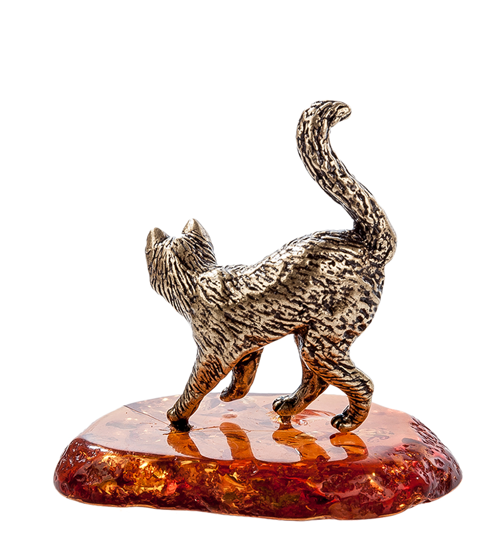 Am-385 фигурка кошка на подставке (латунь, янтарь)