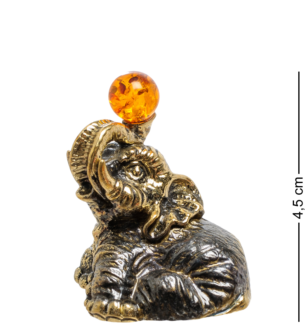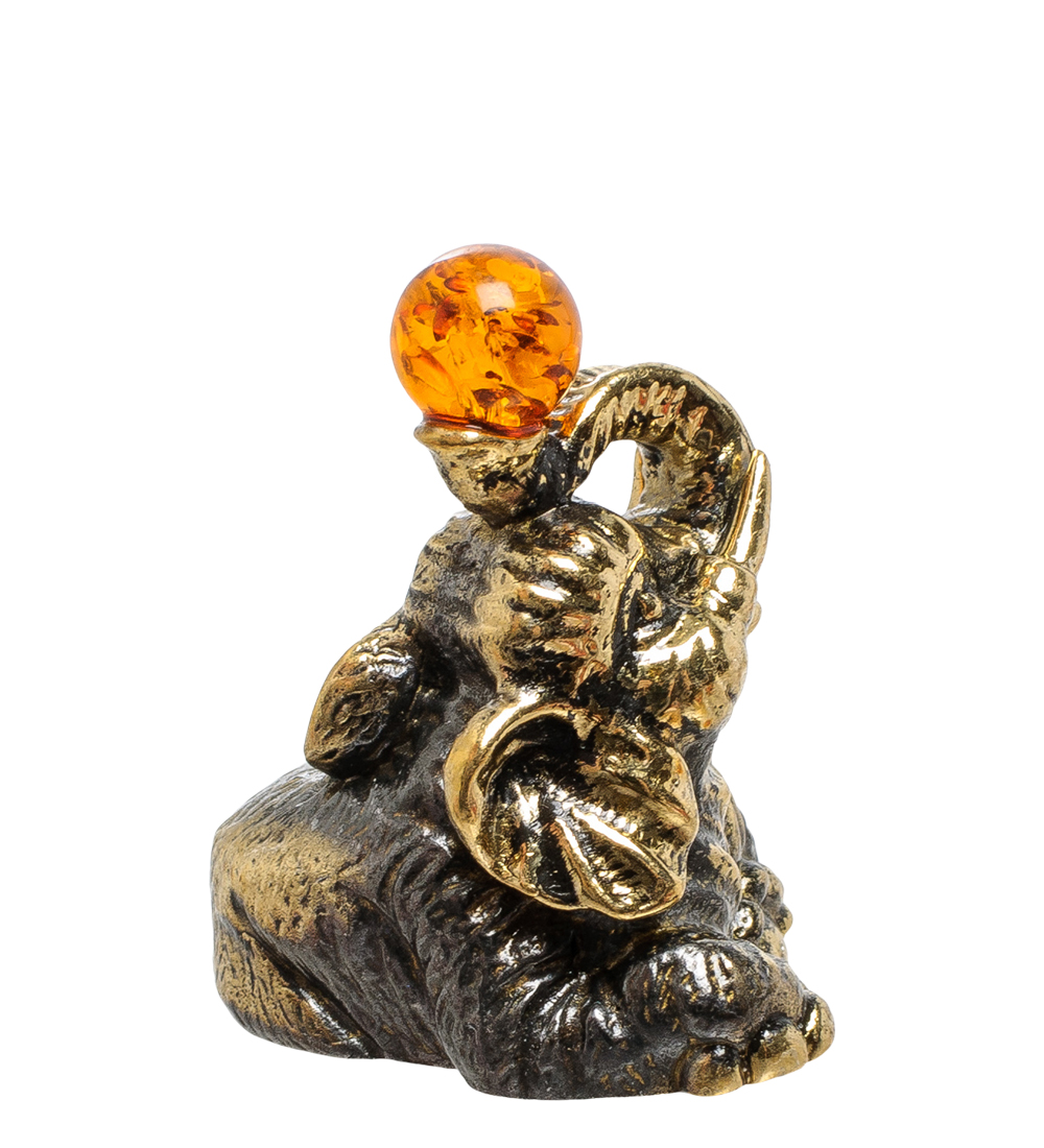 Am-1766 фигурка слон с шаром (латунь, янтарь)