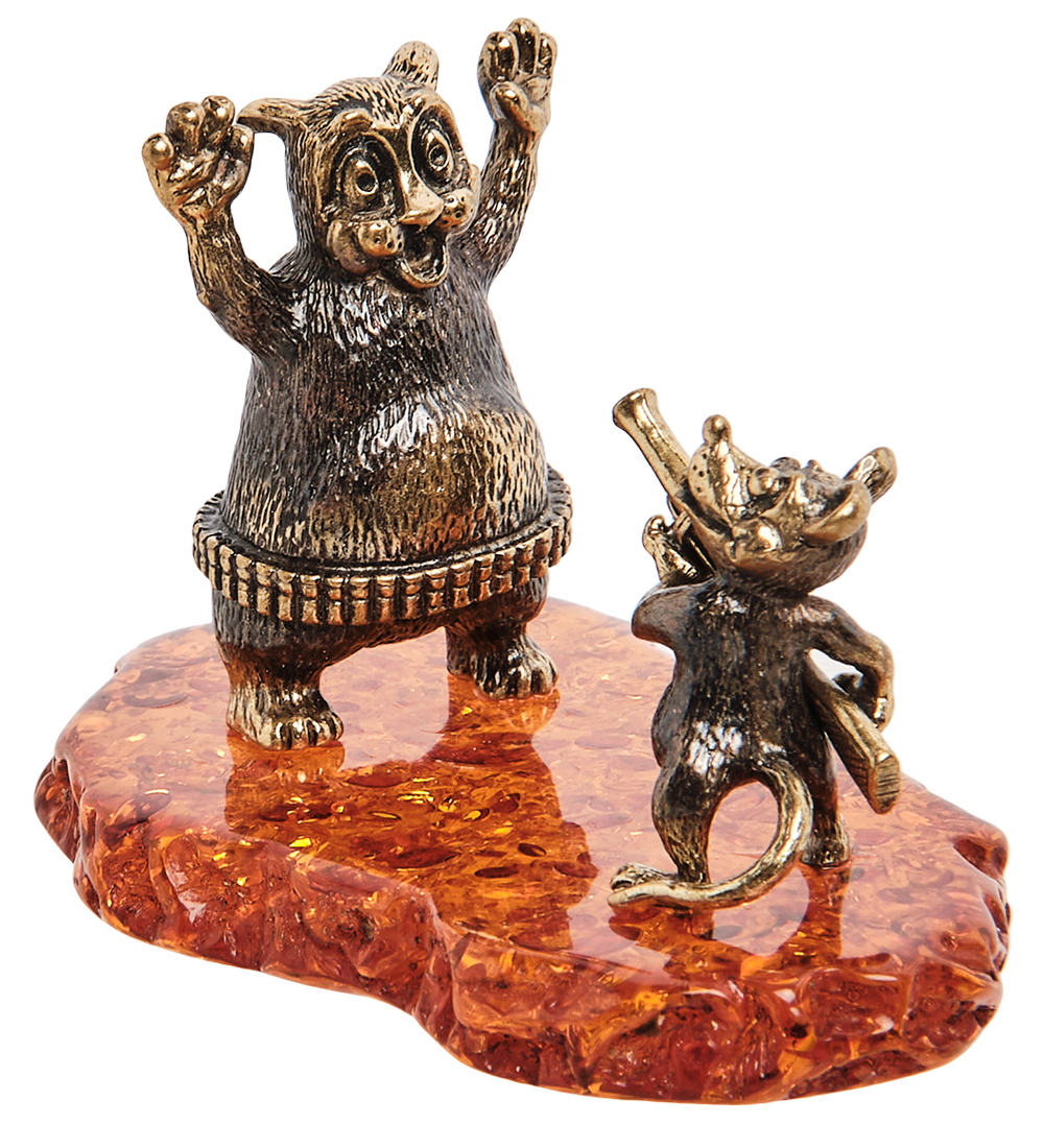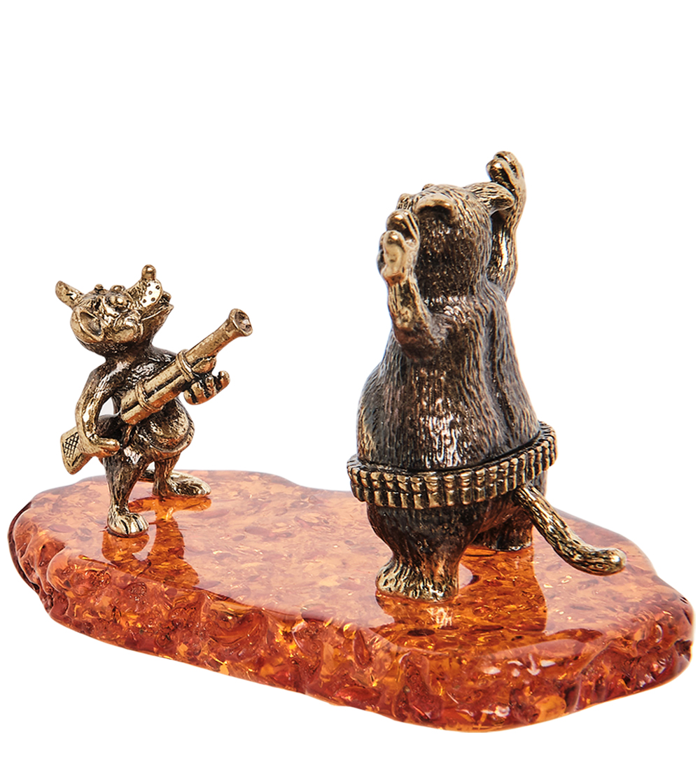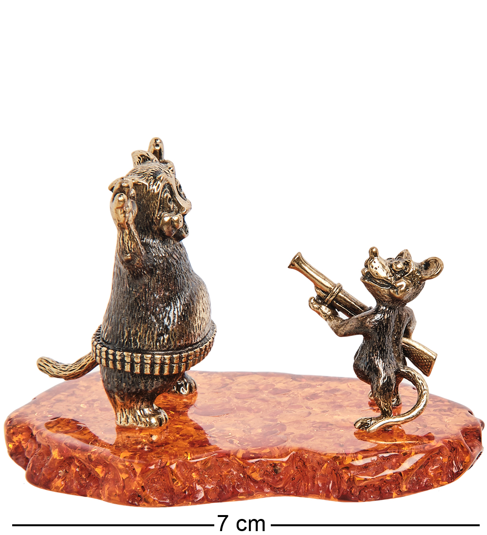Am-1785 фигурка мышь с ружьем (латунь, янтарь)