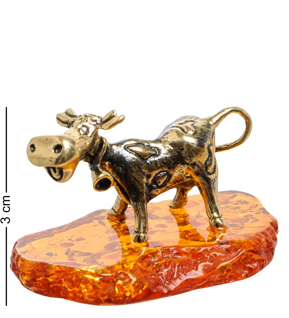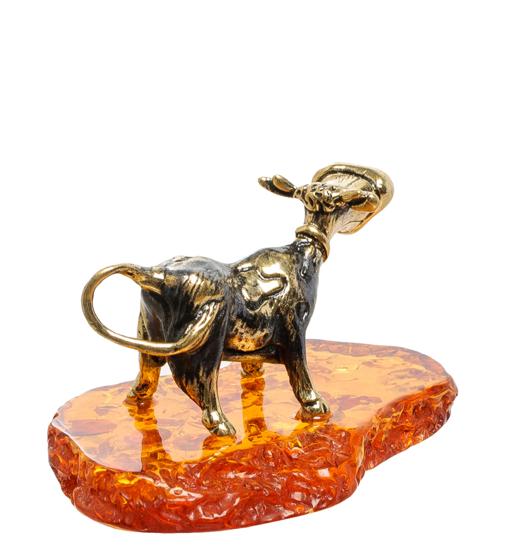 Am-1788 фигурка бычок гаврюша (латунь, янтарь)