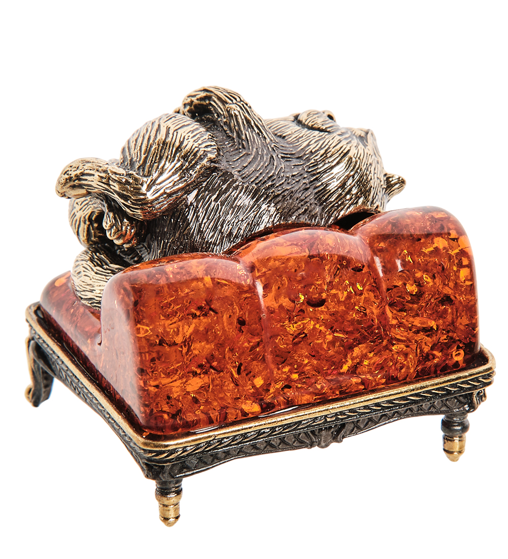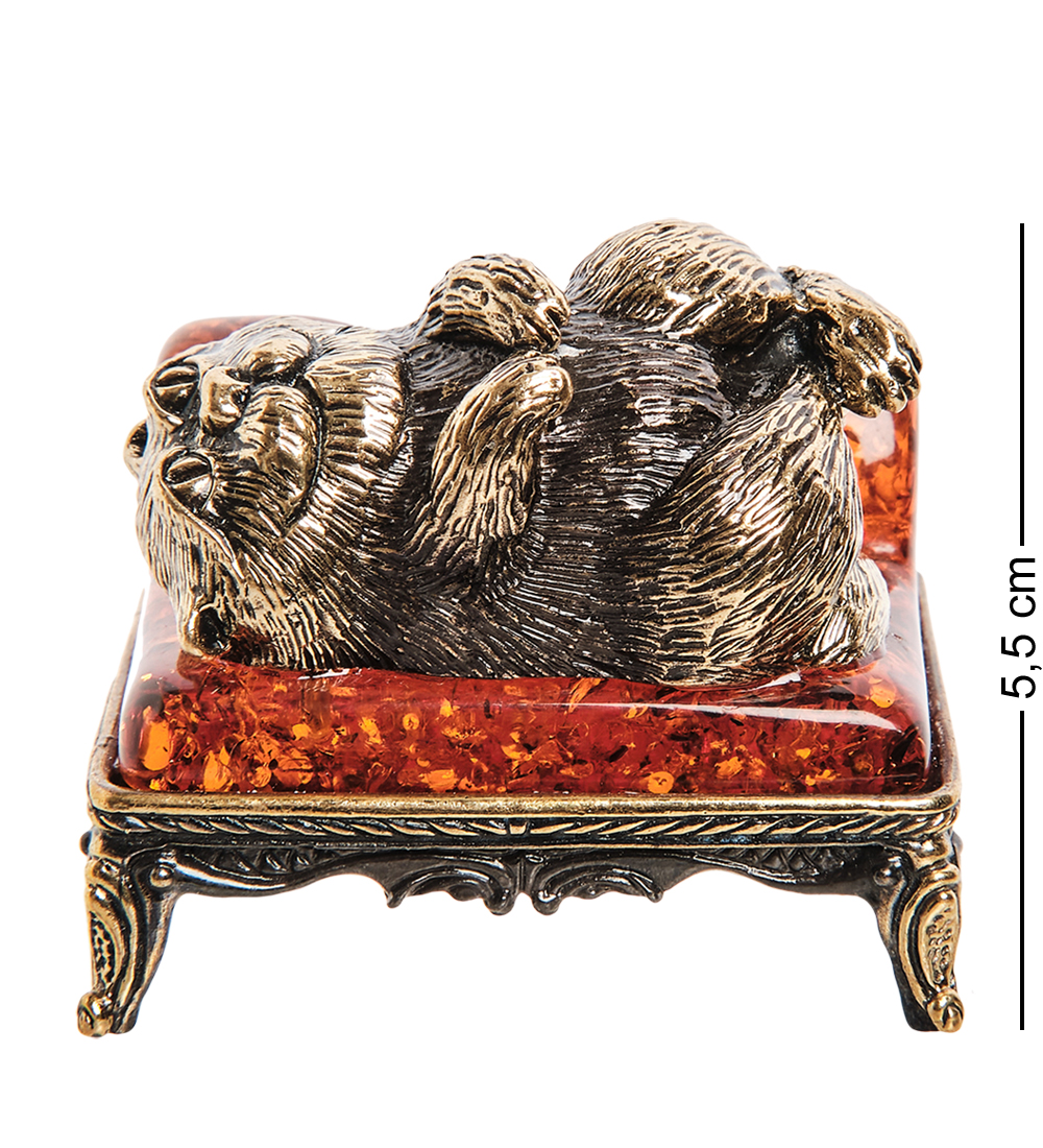 Am-1792 фигурка кот на диване (латунь, янтарь)