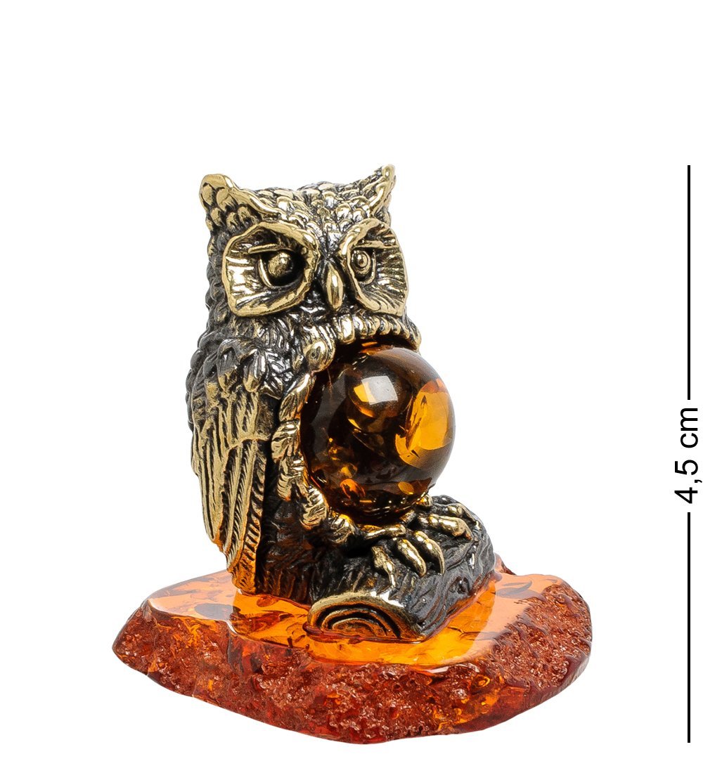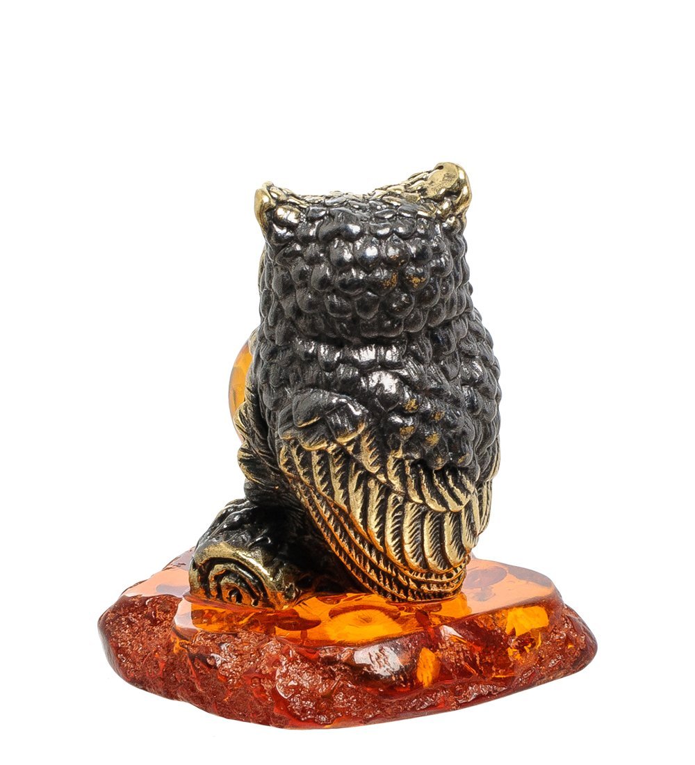 Am-1798 фигурка птица филин на пне (латунь, янтарь)