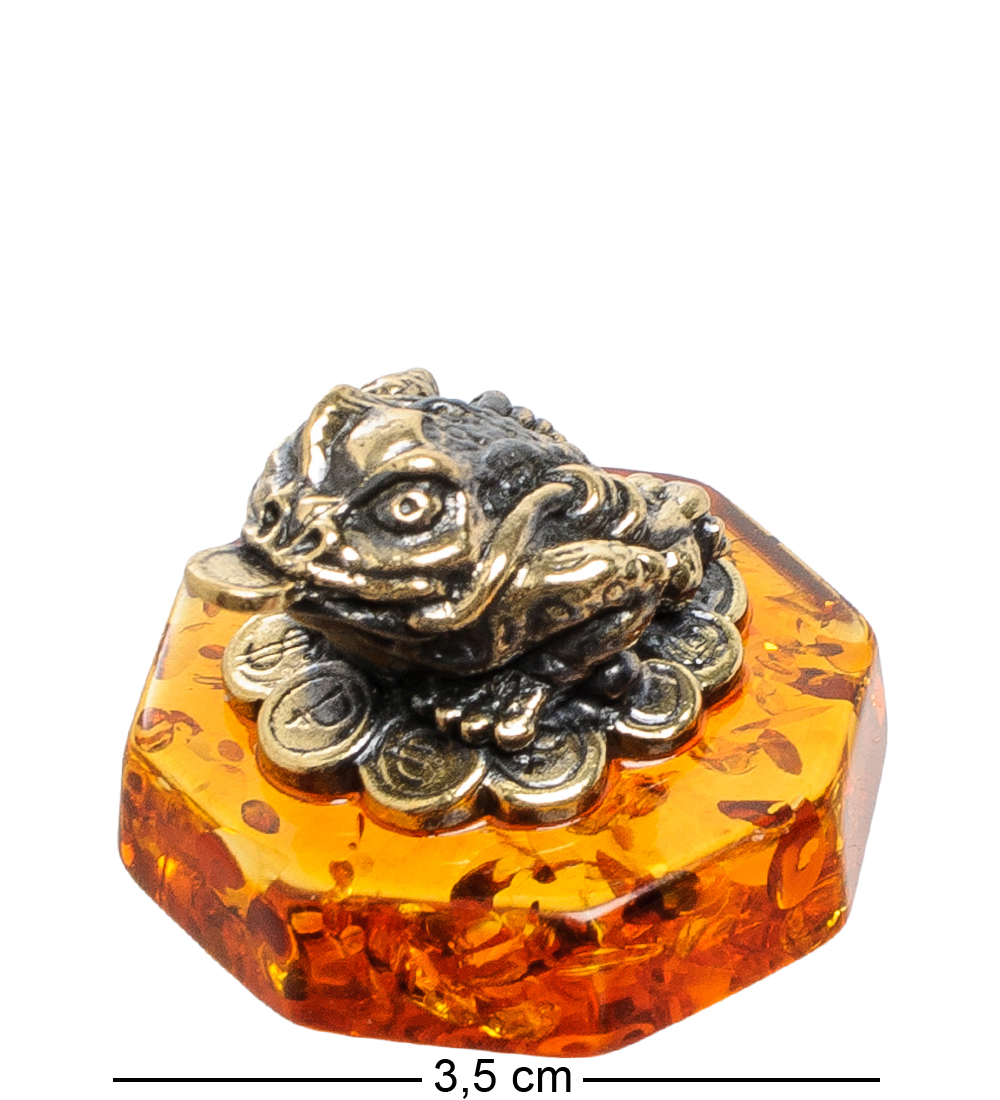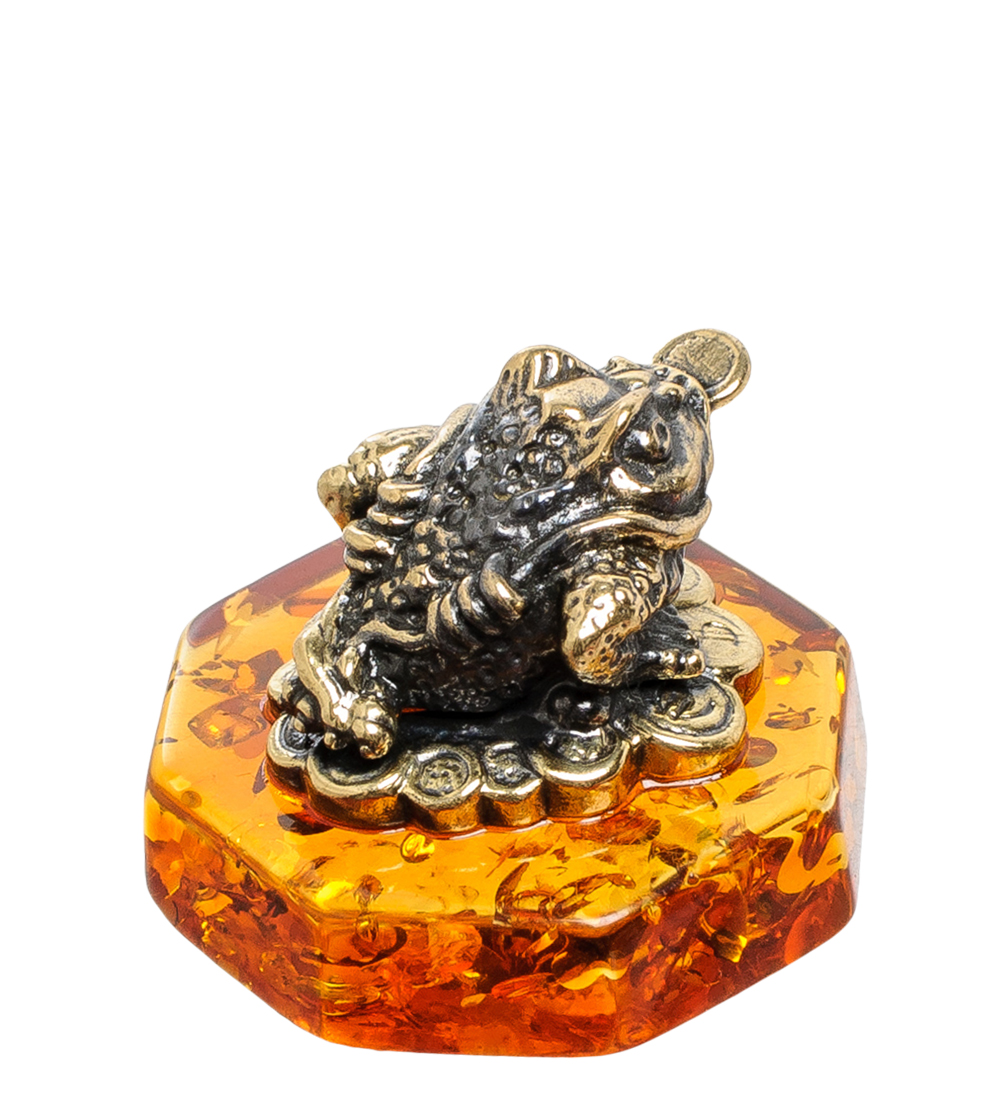 Am-1820 фигурка лягушка фен-шуй с монетами (латунь, янтарь)