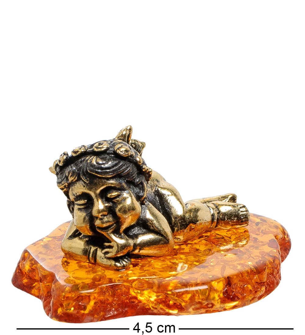 Am-1827 фигурка ангелочек мечтатель (латунь, янтарь)