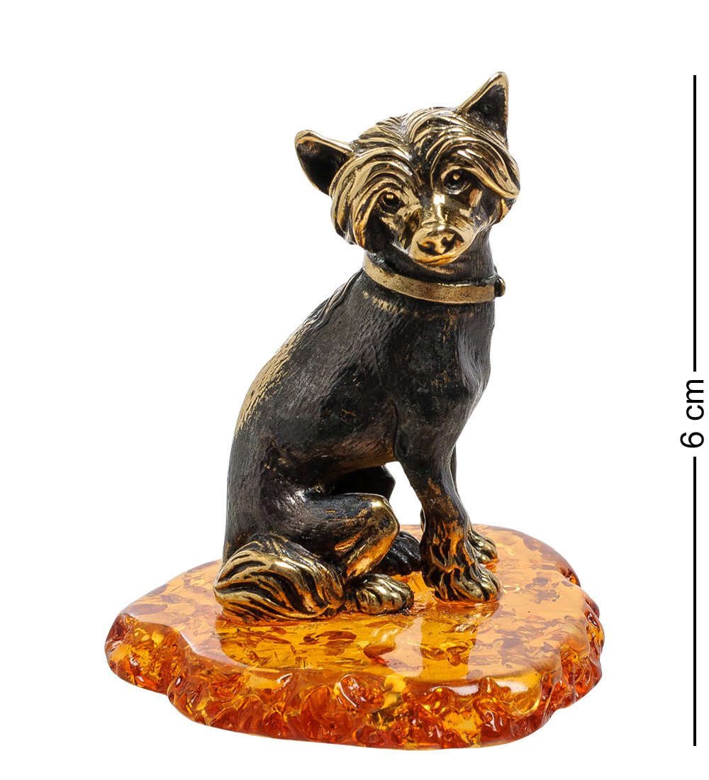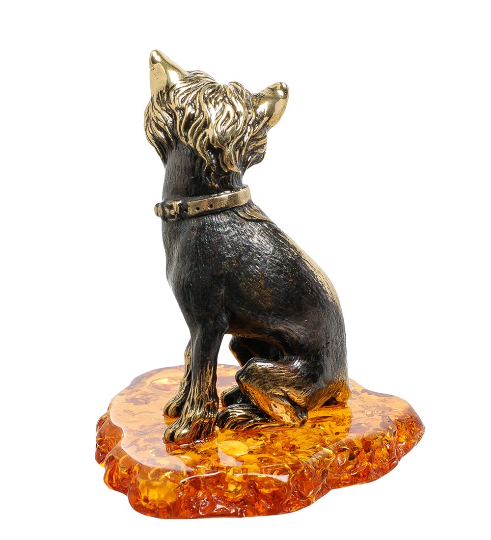 Am-1830 фигурка собака-китайская хохлатая (латунь, янтарь)