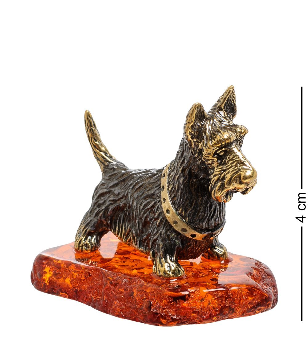 Am-1843 фигурка скотч терьер (латунь, янтарь)