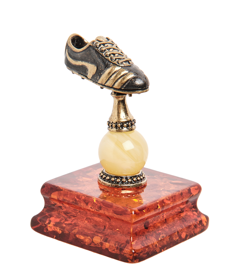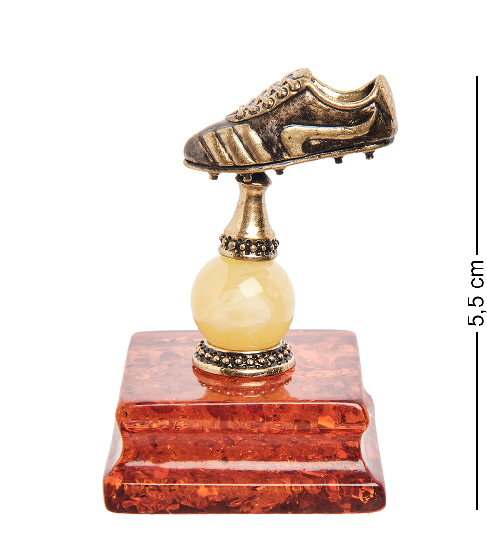 Am-1844 фигурка футболльная бутса (латунь, янтарь)