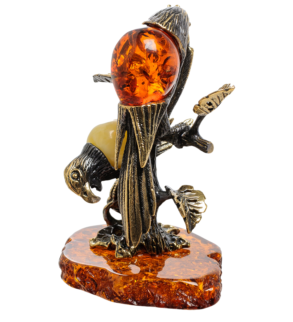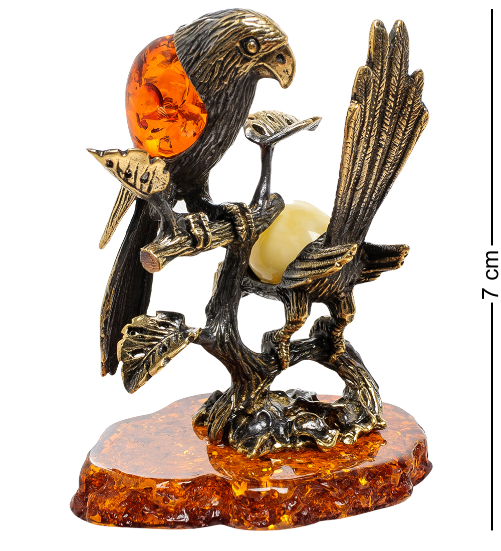 Am-1852 фигурка попугаи (латунь, янтарь)