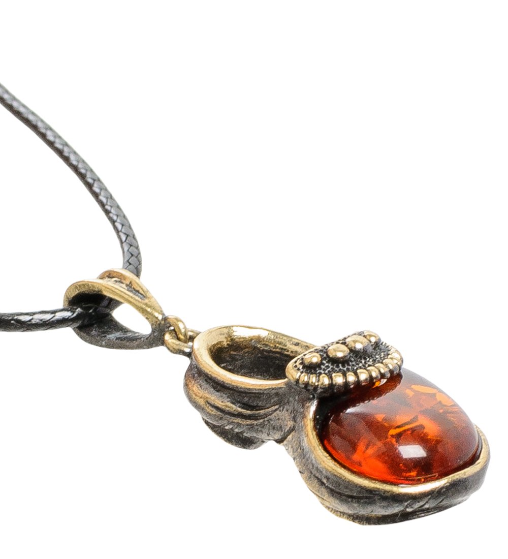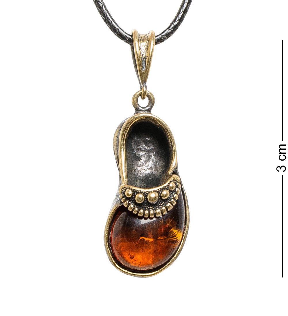 Am-1854 подвеска тапочка (латунь, янтарь)