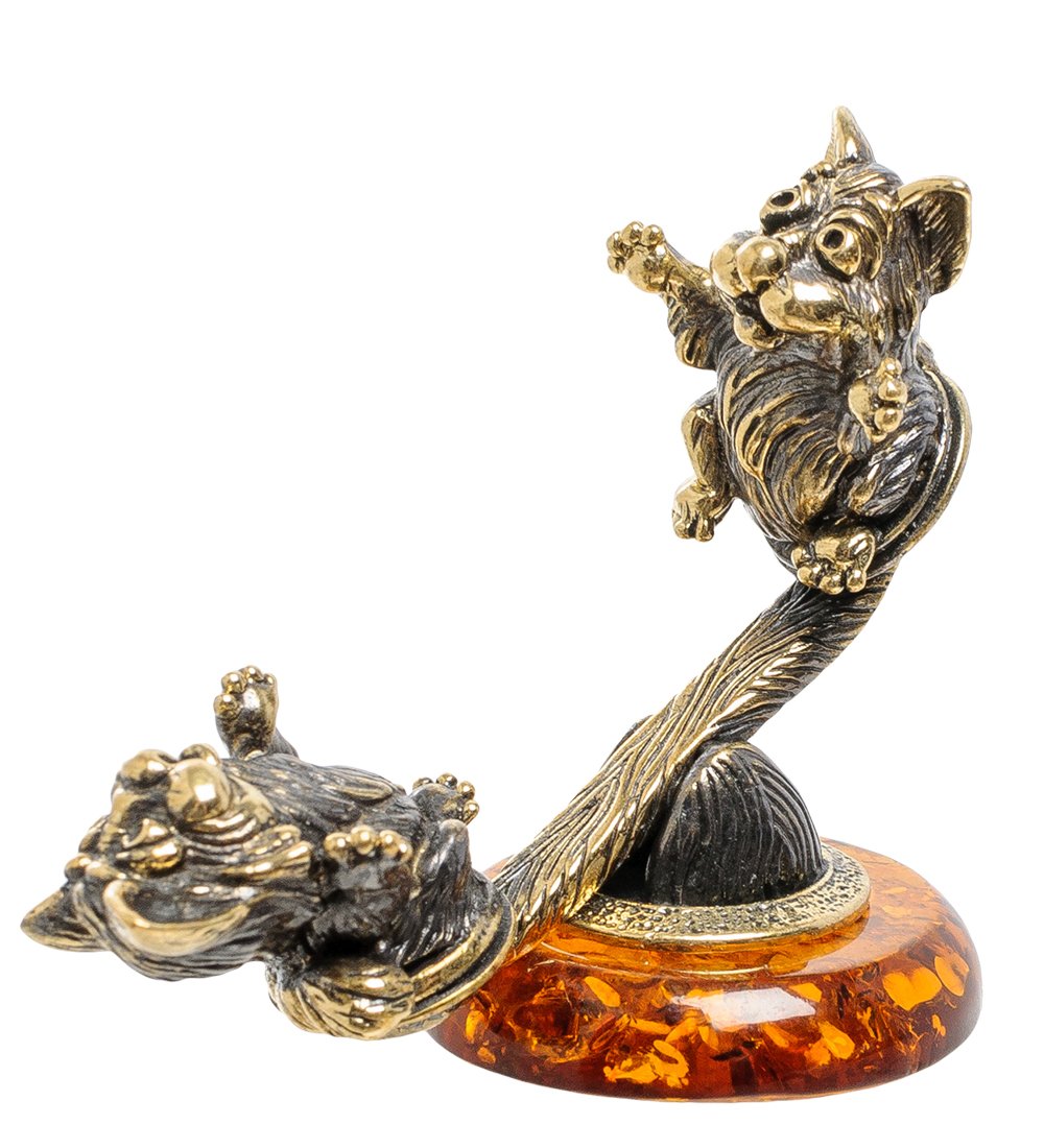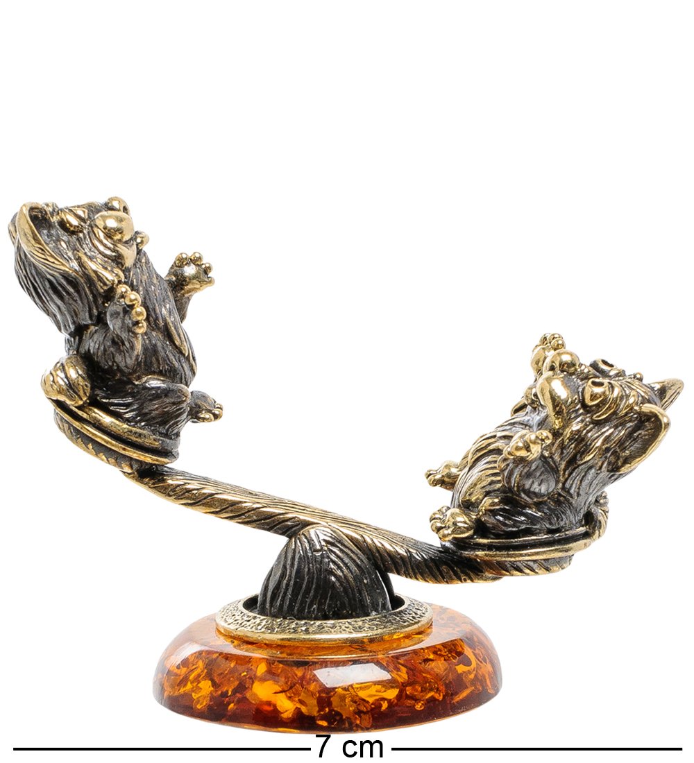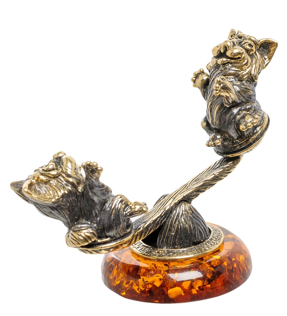 Am-1857 фигурка коты на качелях (латунь, янтарь)