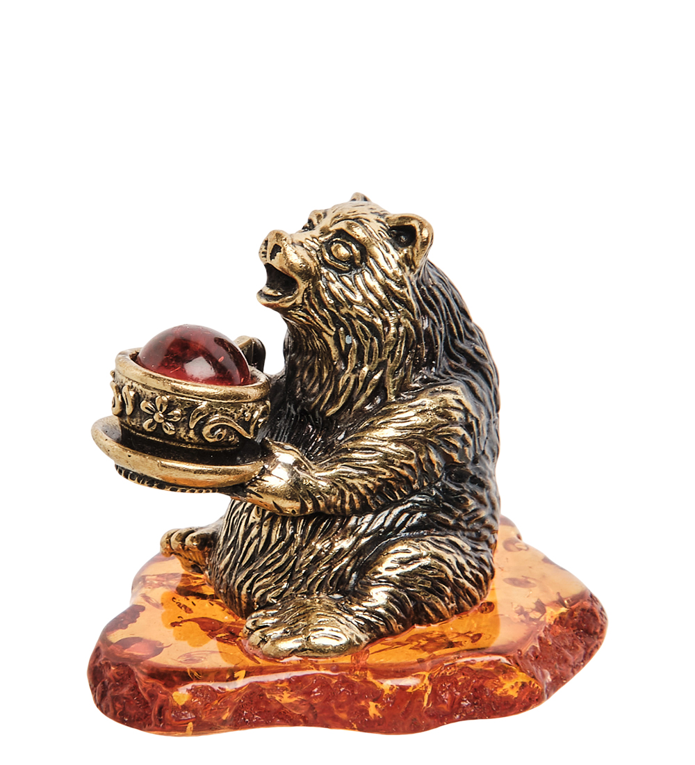 Am-1859 фигурка медведь с чашкой (латунь, янтарь) Am-1859 фигурка медведь с чашкой (латунь, янтарь)