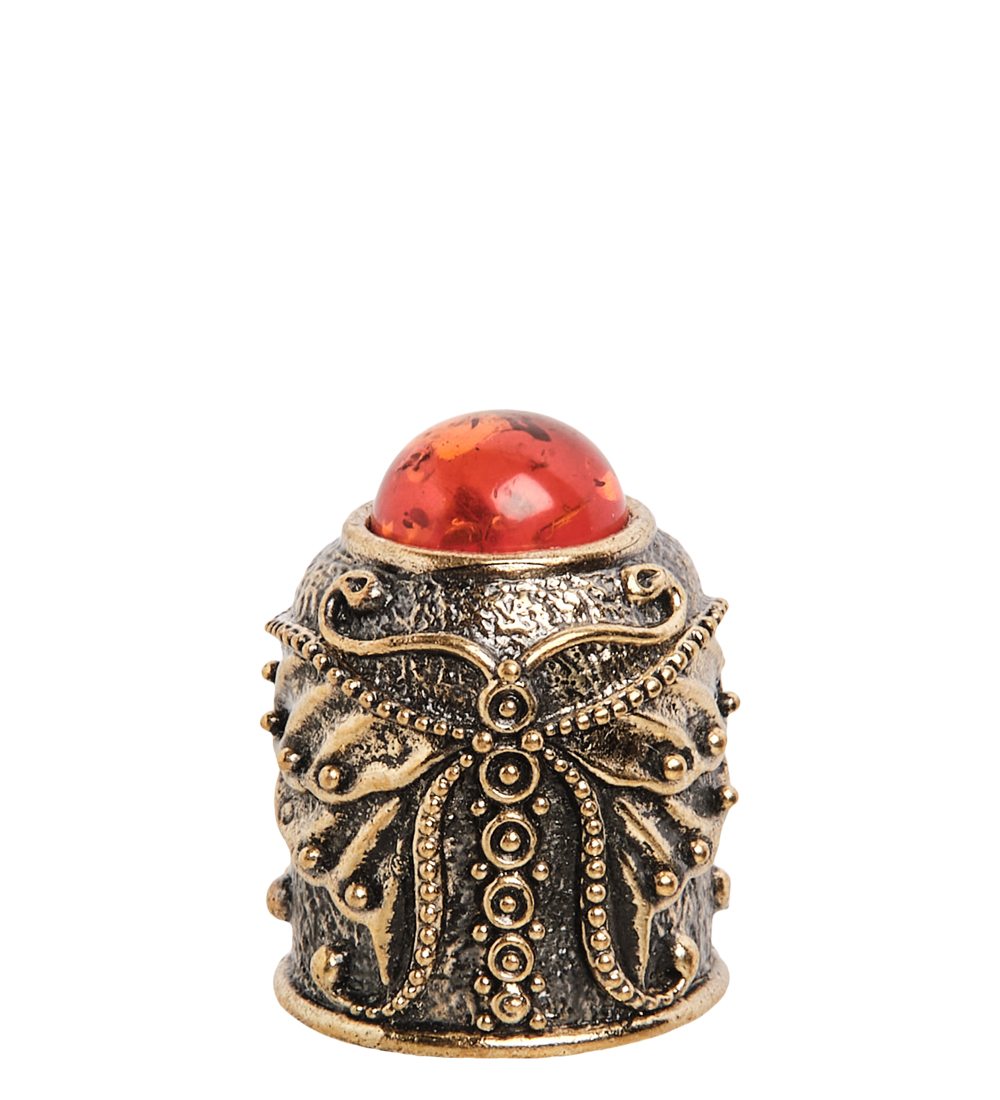 Am-1899 наперсток бабочка ажурная (латунь, янтарь)
