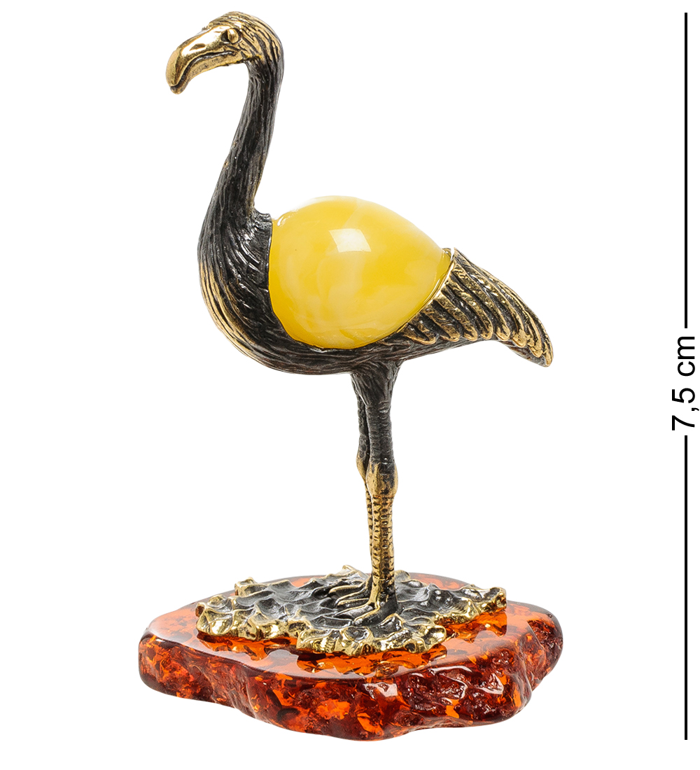 Am-1927 фигурка фламинго папа (латунь, янтарь)