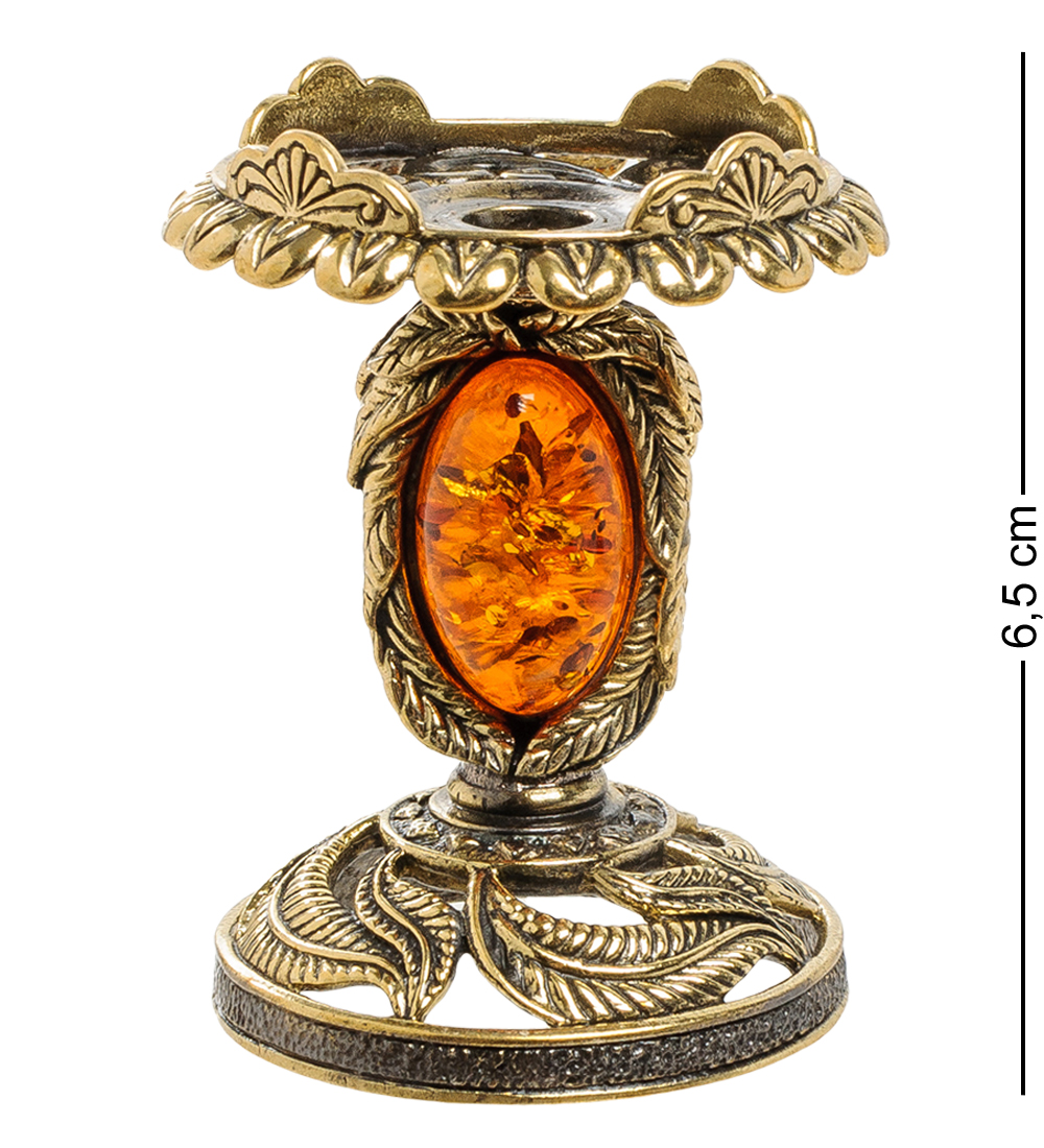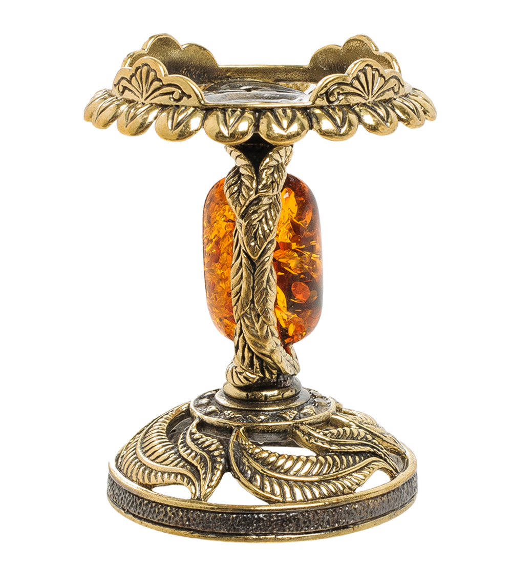 Am-1939 подсвечник лесная мелодия (латунь, янтарь)
