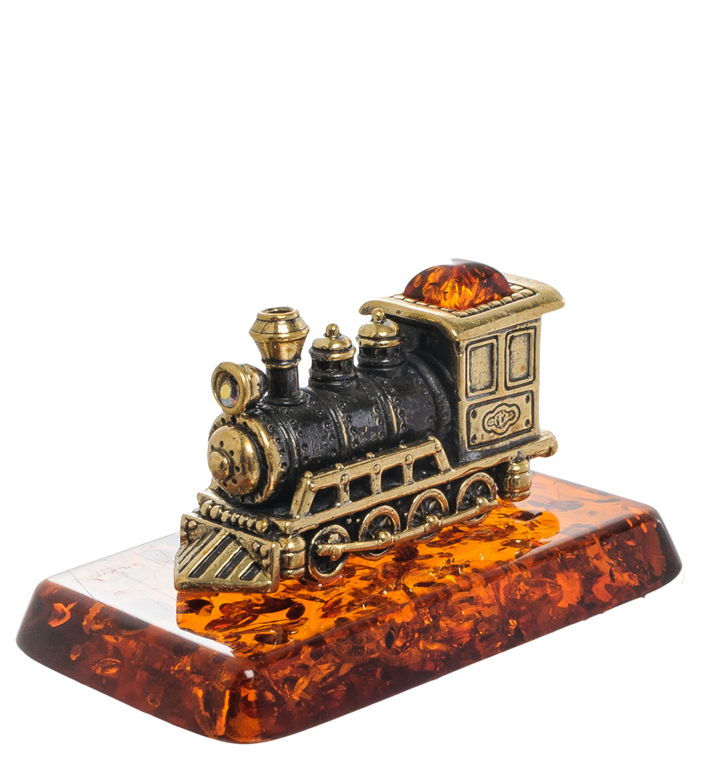 Am-1948 фигурка паровозр (латунь, янтарь)