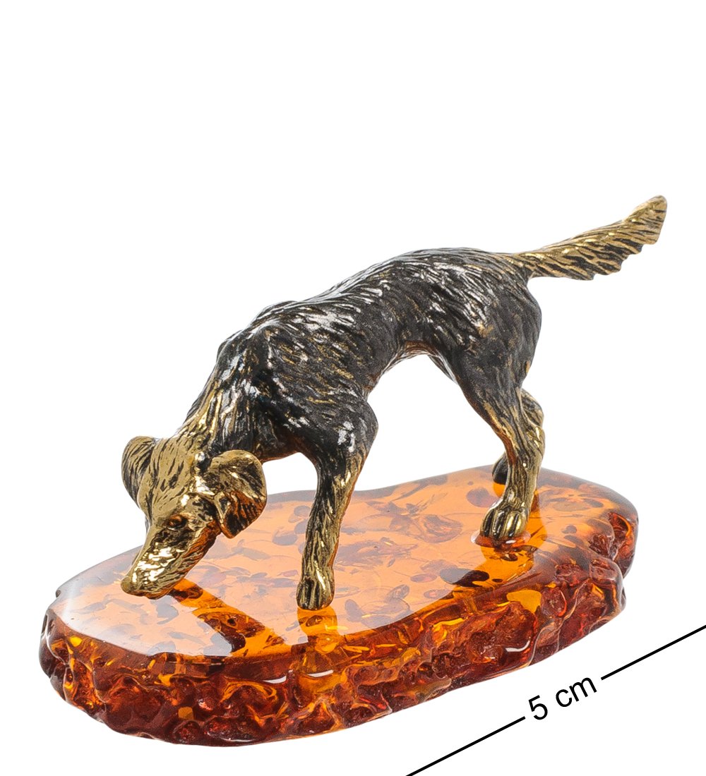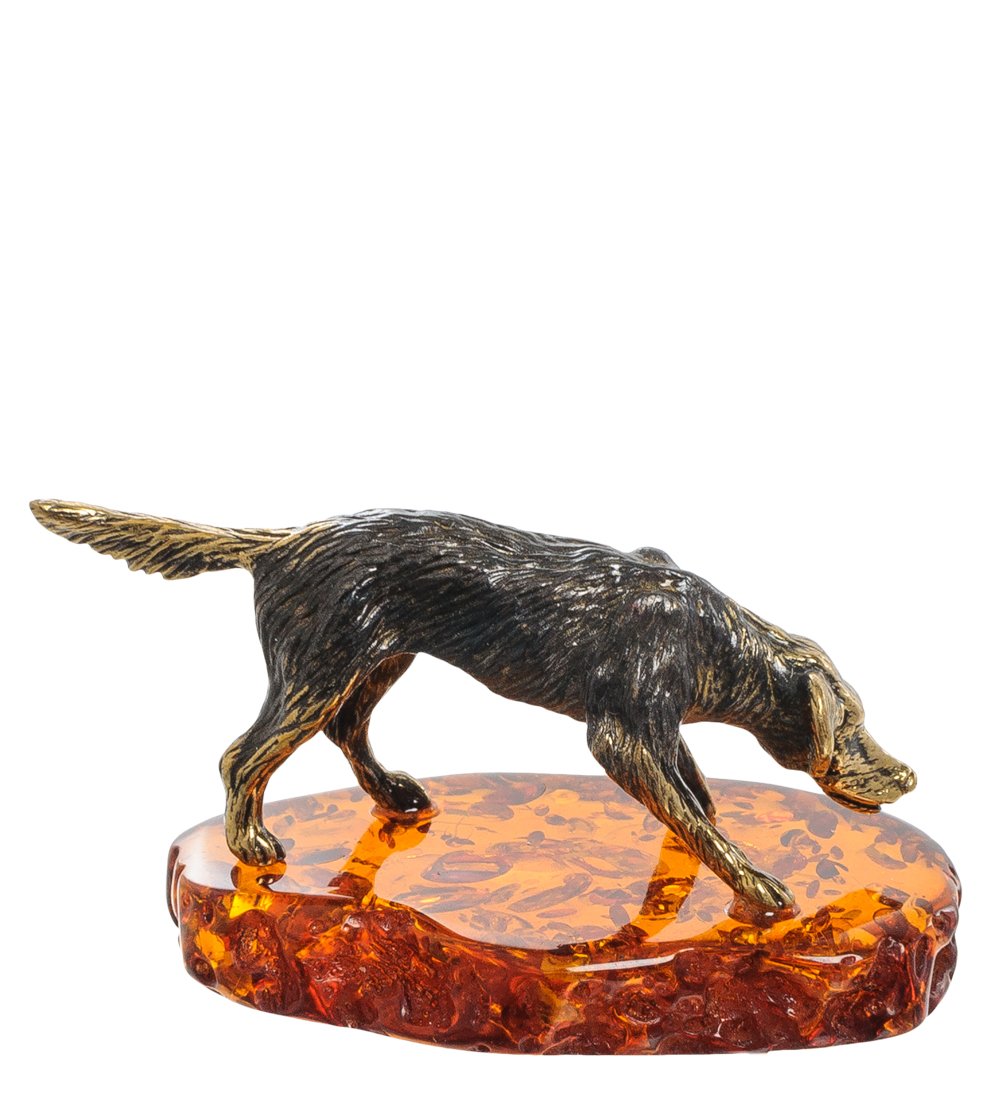 Am-1951 фигурка собака охотничья (латунь, янтарь)