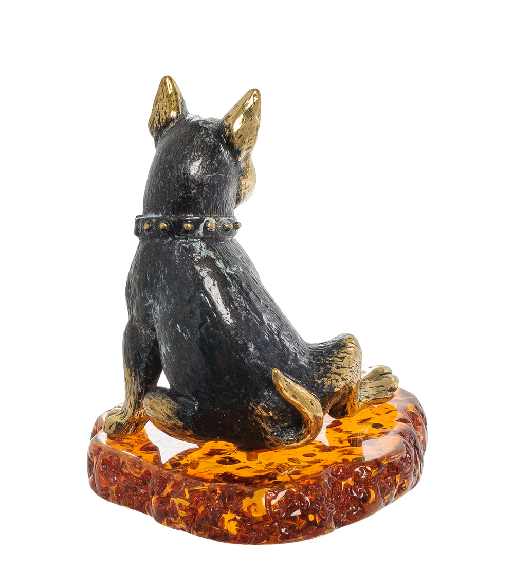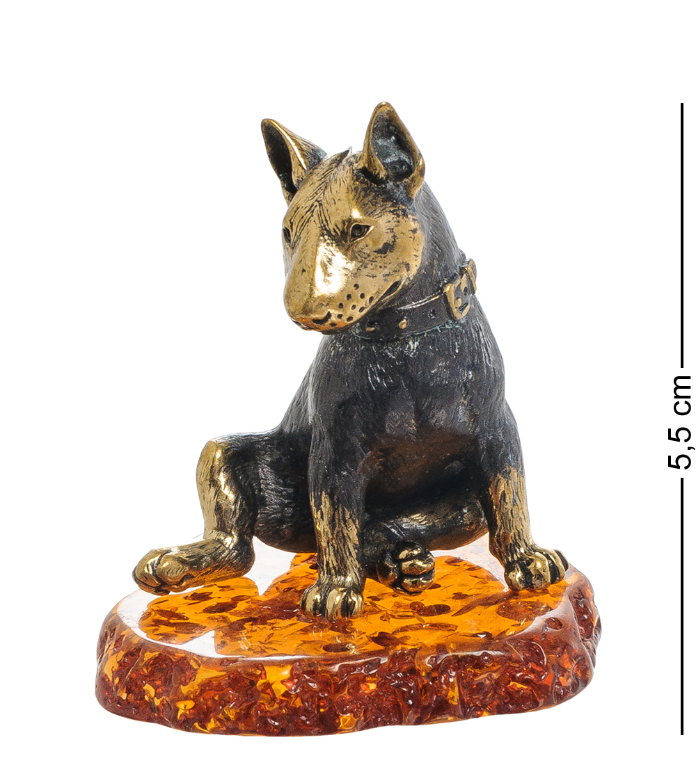 Am-1952 фигурка собака бультерьер (латунь, янтарь)