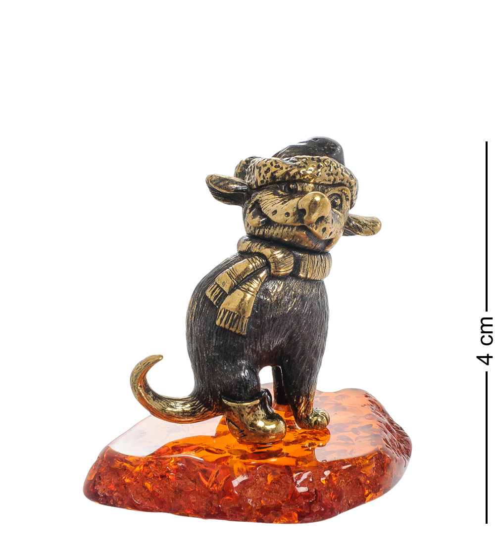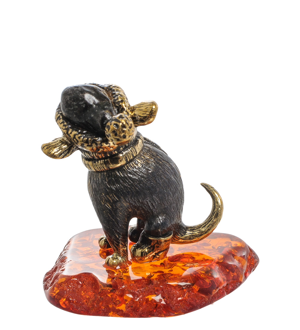 Am-1954 фигурка собака зимнее счастье (латунь, янтарь)