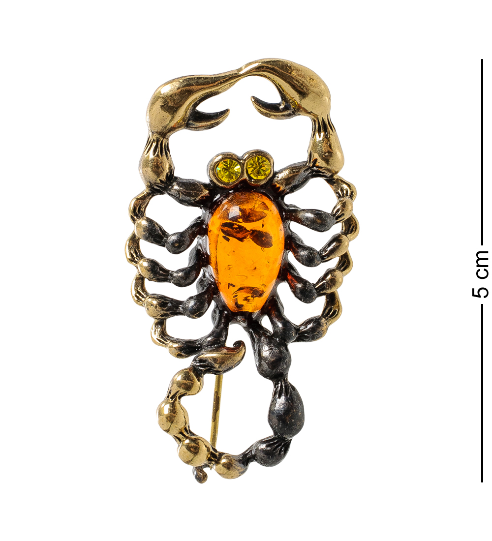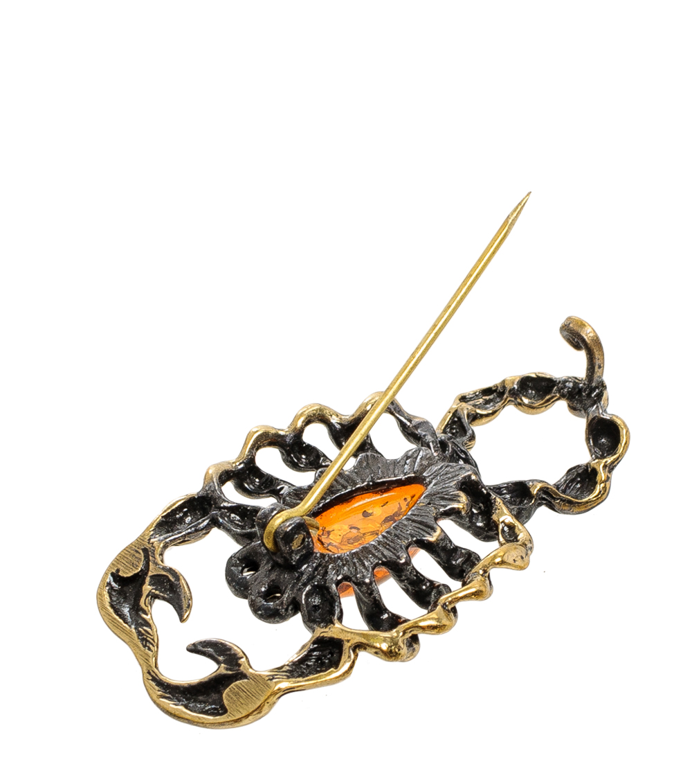 Am-1966 фигурка-брошь скорпион (латунь, янтарь)