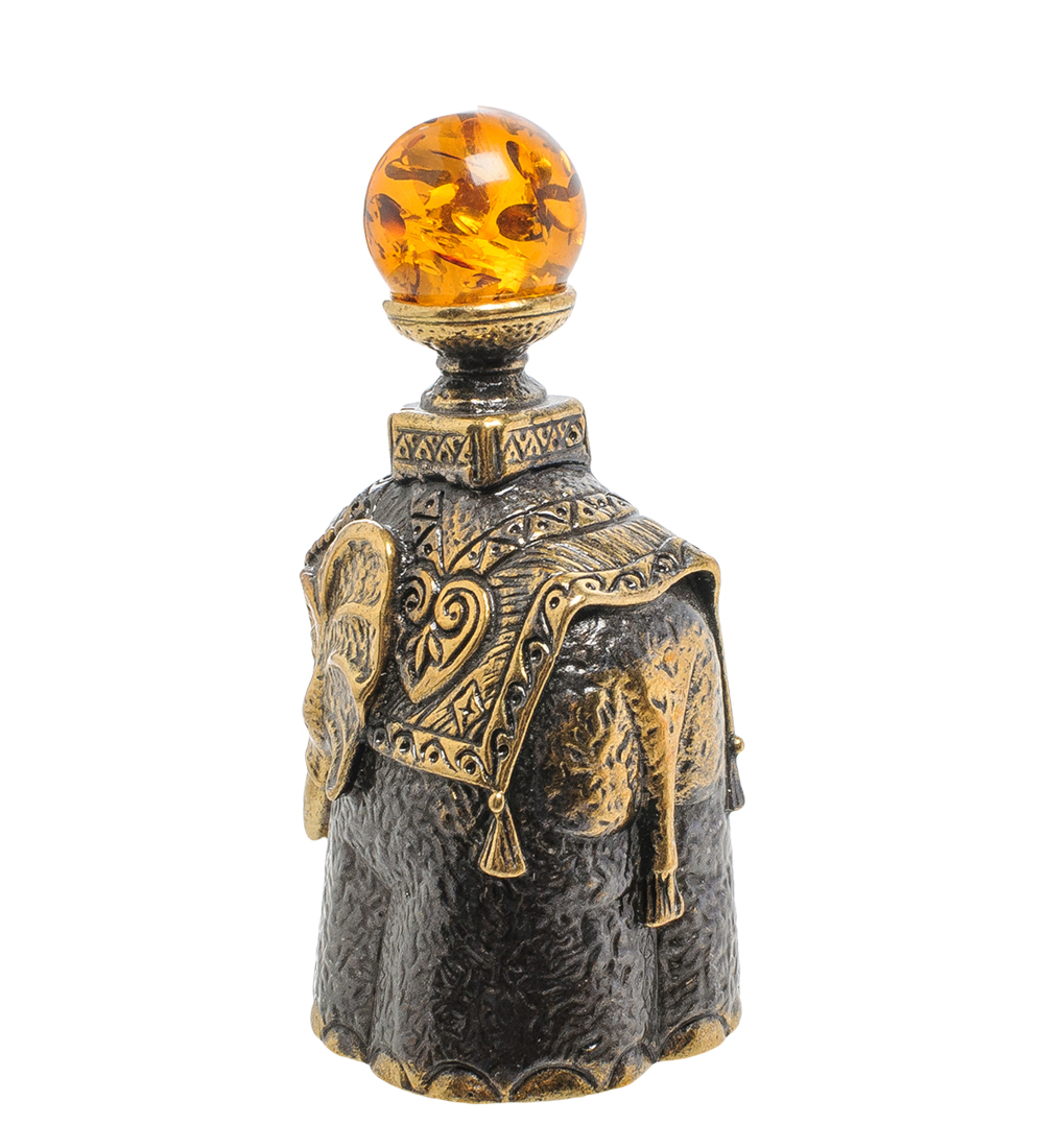 Am-2016 фигурка колокольчик-слон индийский (латунь, янтарь)