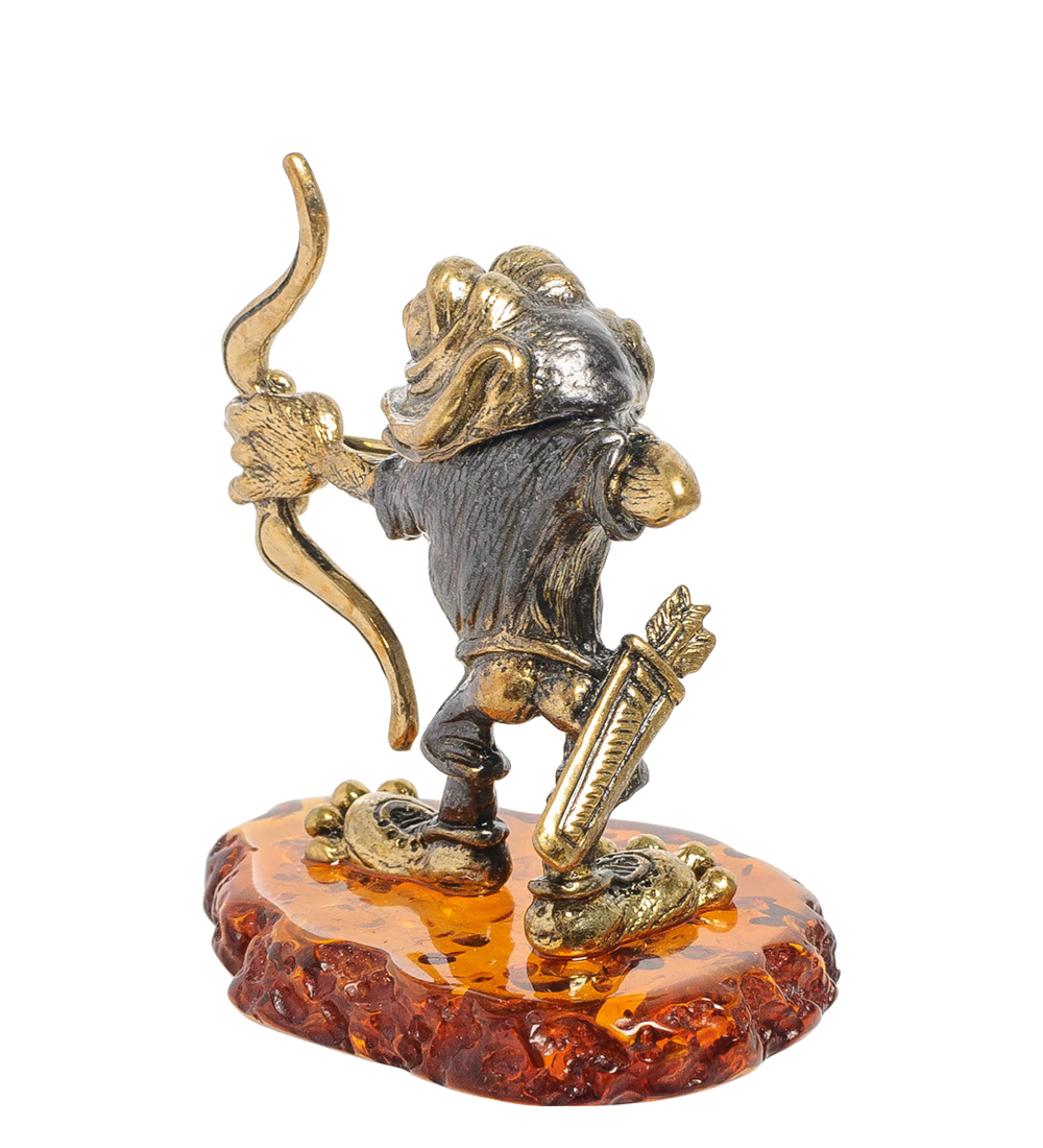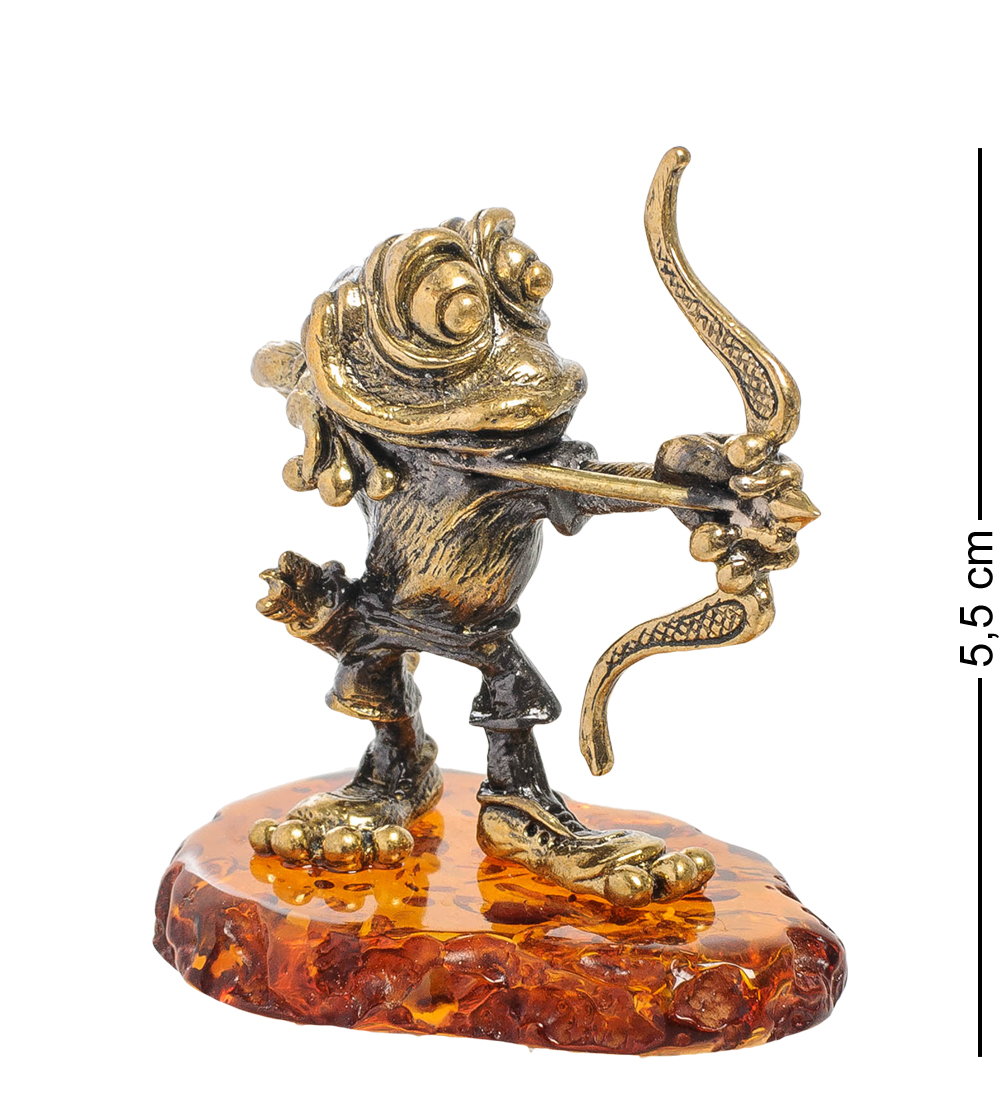 Am-2024 фигурка лягушка-лучник (латунь, янтарь)