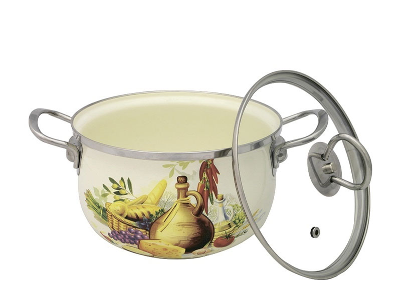 Кастрюля эмаль.рос-705 8,6л.стекл.крыш.