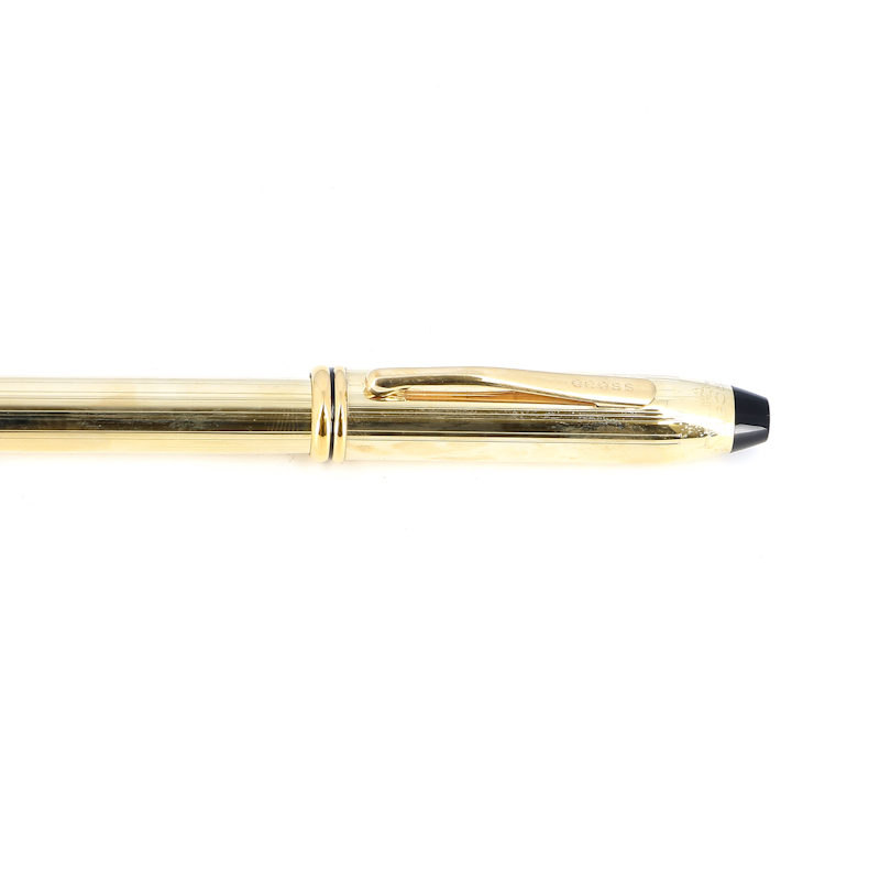 Описание: Перьевая ручка Cross Townsend. Корпус - латунь и позолота 10К. Отделка и детали дизайна - позолота 23К. Перо - золото 18К, тонкое. Цвет - золотистый.