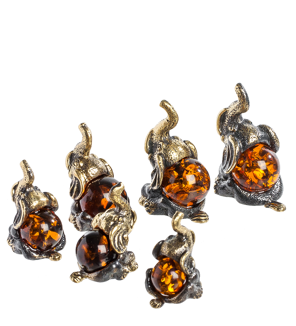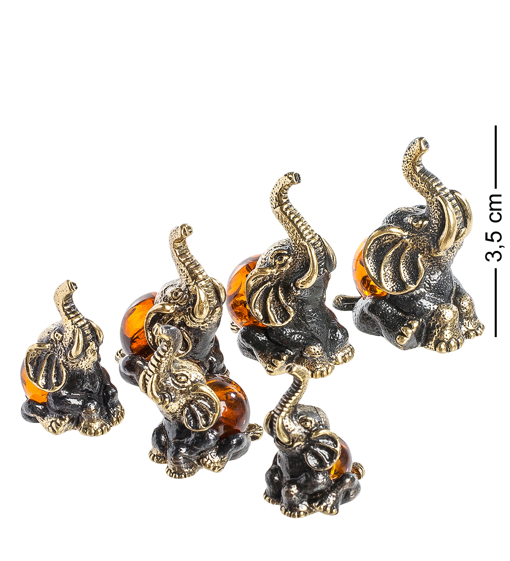 Am-553 фигурка слон набор 7шт.(латунь, янтарь)