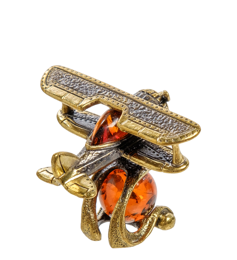 Am-2059 фигурка самолет-кукурузник (латунь, янтарь)