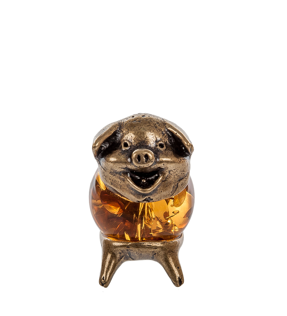 Am-521 фигурка пятачок (латунь, янтарь)