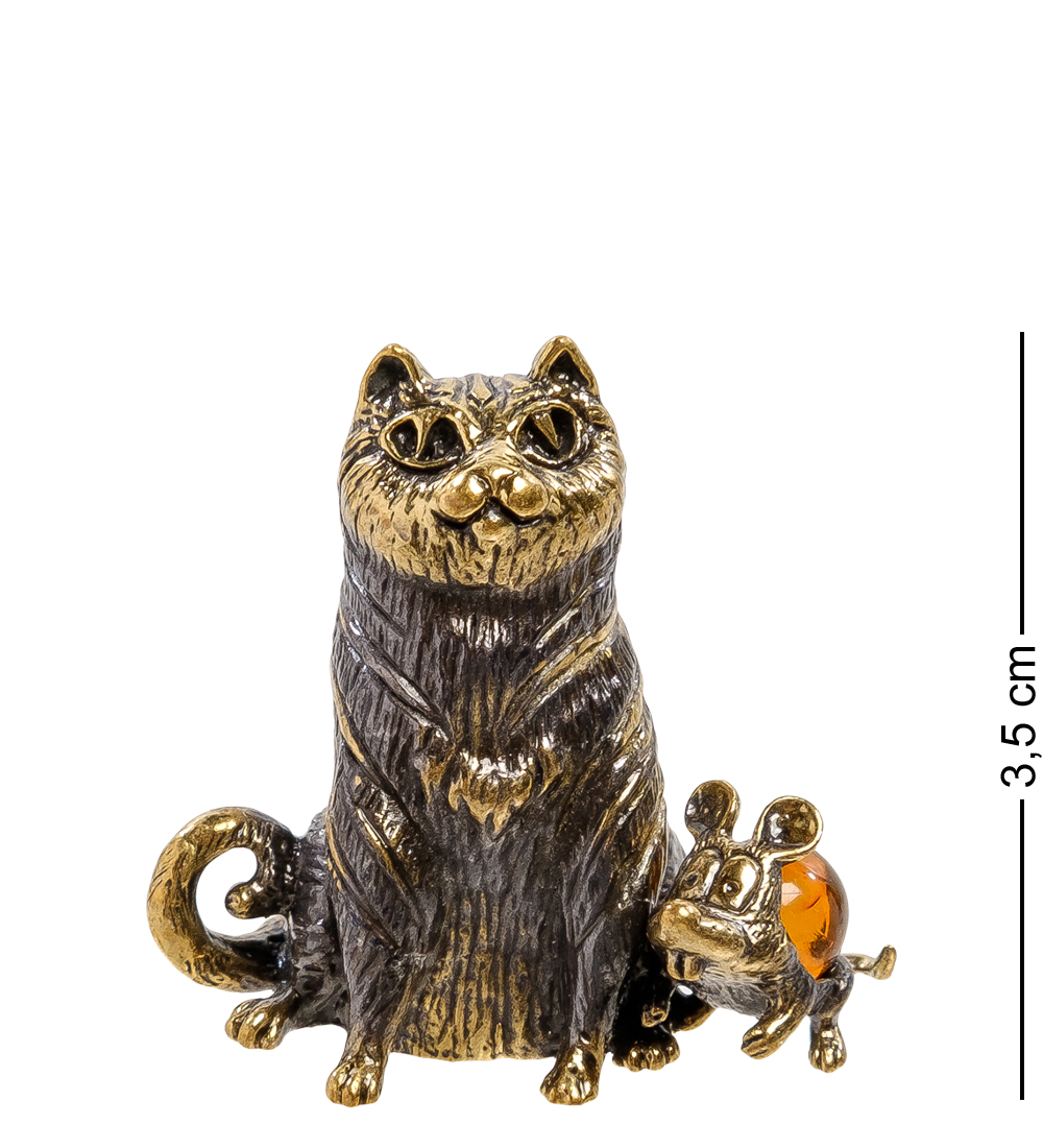 Am-2131 фигурка кот и мышка (латунь, янтарь)