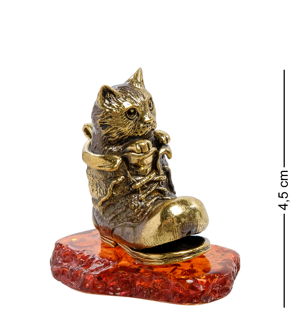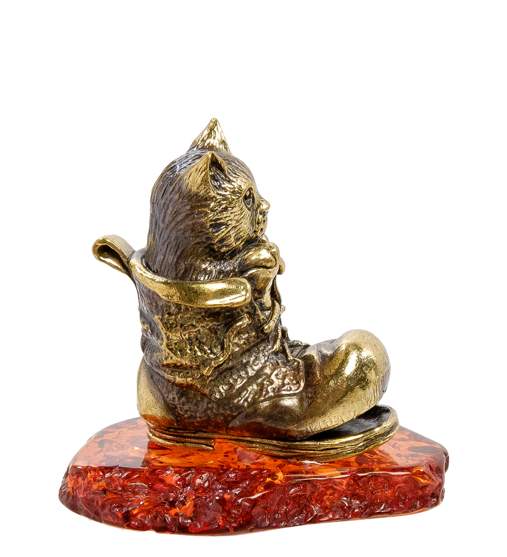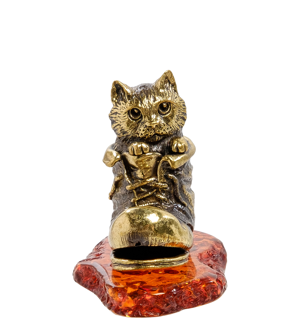 Am-2136 фигурка котик в башмаке (латунь, янтарь)