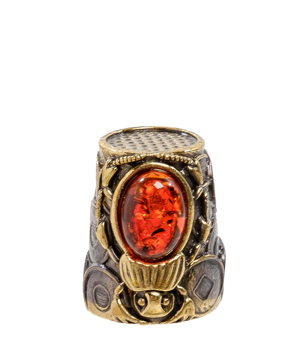 Am-2156 наперсток жук египетский (латунь, янтарь)
