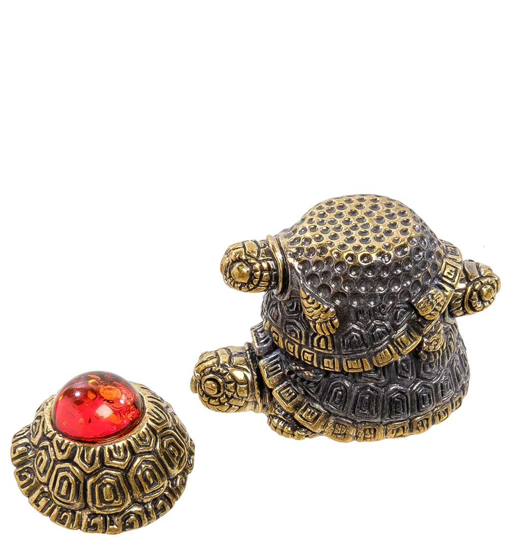 Am-2159 наперсток черепаха трио (латунь, янтарь)