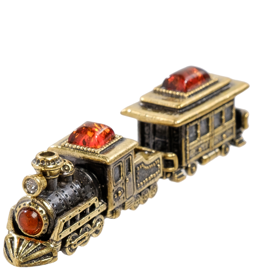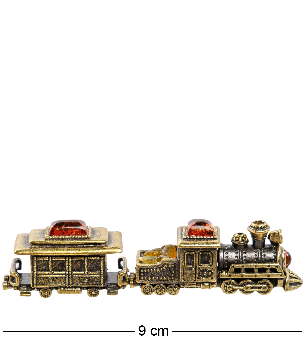 Am-2168 фигурка паровоз -пасажирский (латунь, янтарь)