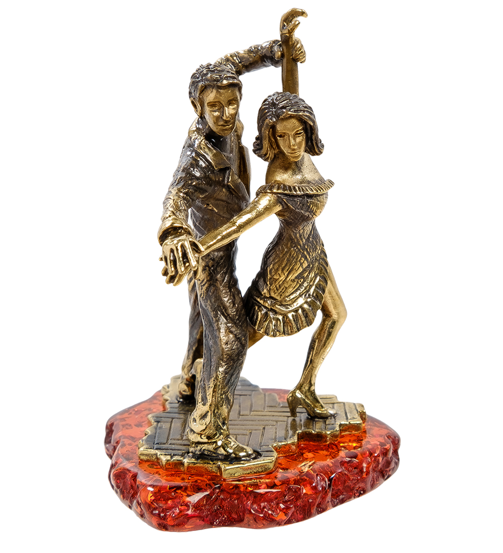 Am-2169 фигурка парочка-бальные танцы (латунь, янтарь)